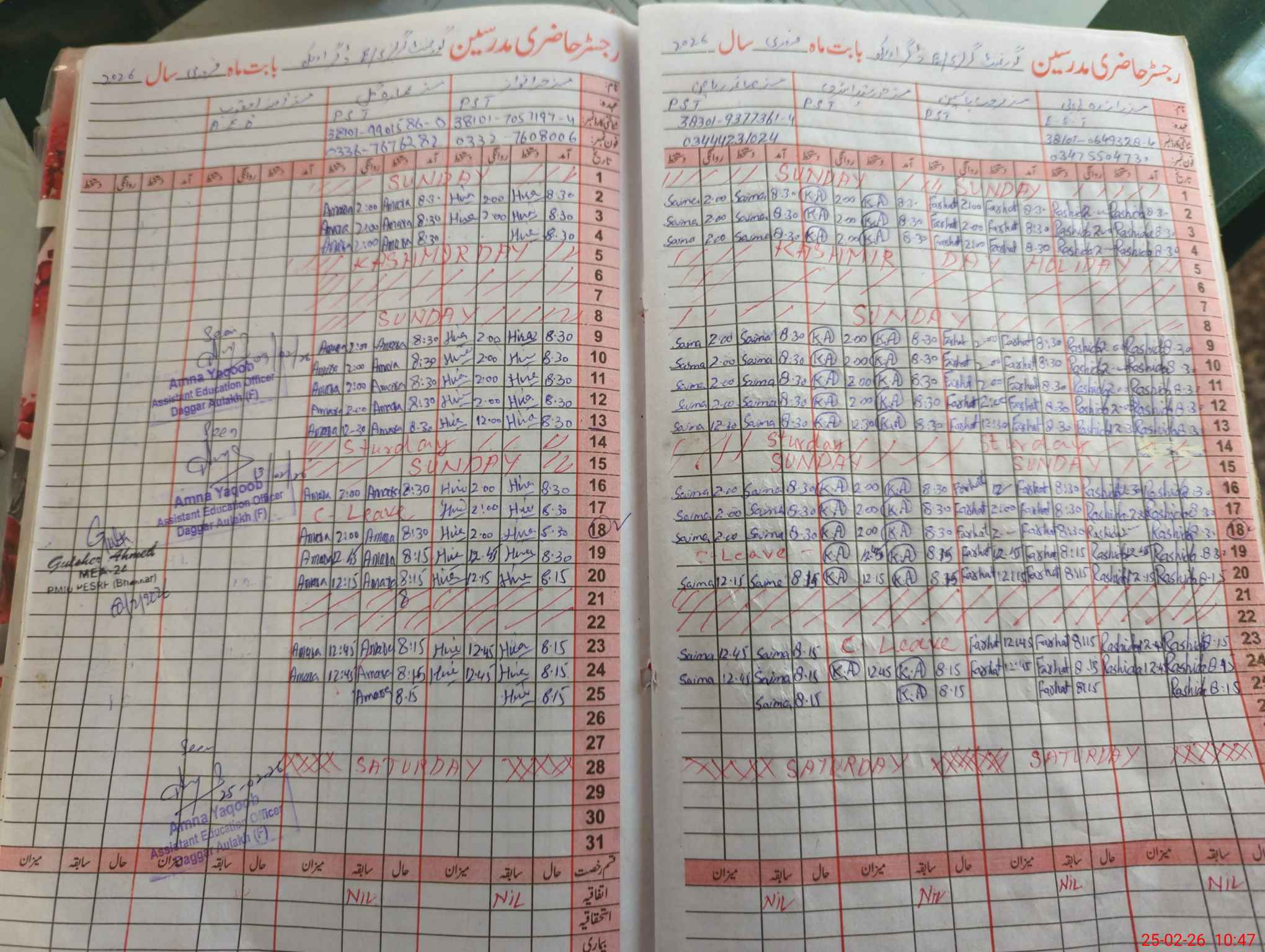 | CNIC | Full Name | Designation | R/C | Absence During Last Calender Month |