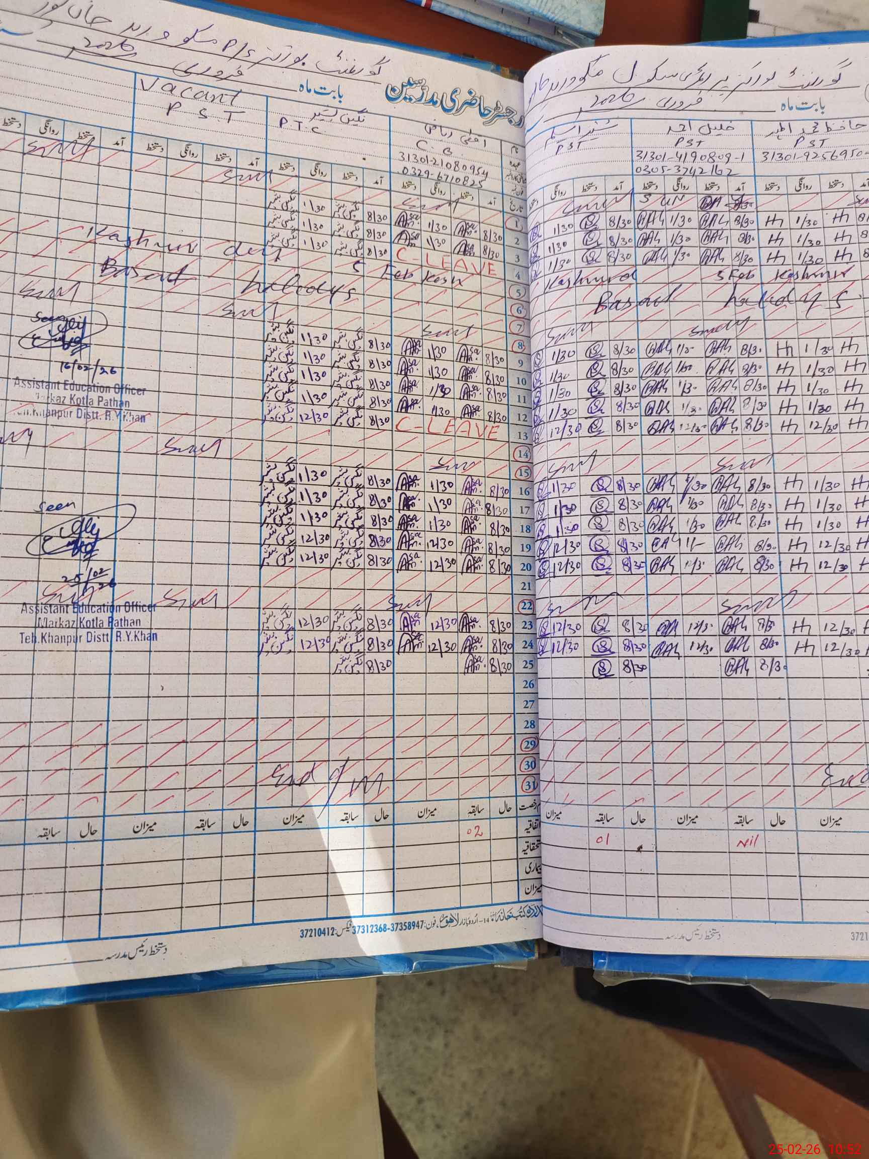| Name: MU**** AL**** Designation: (School Headmaster's/Headmistress's) PST Phone/Cell Number: 03**** |