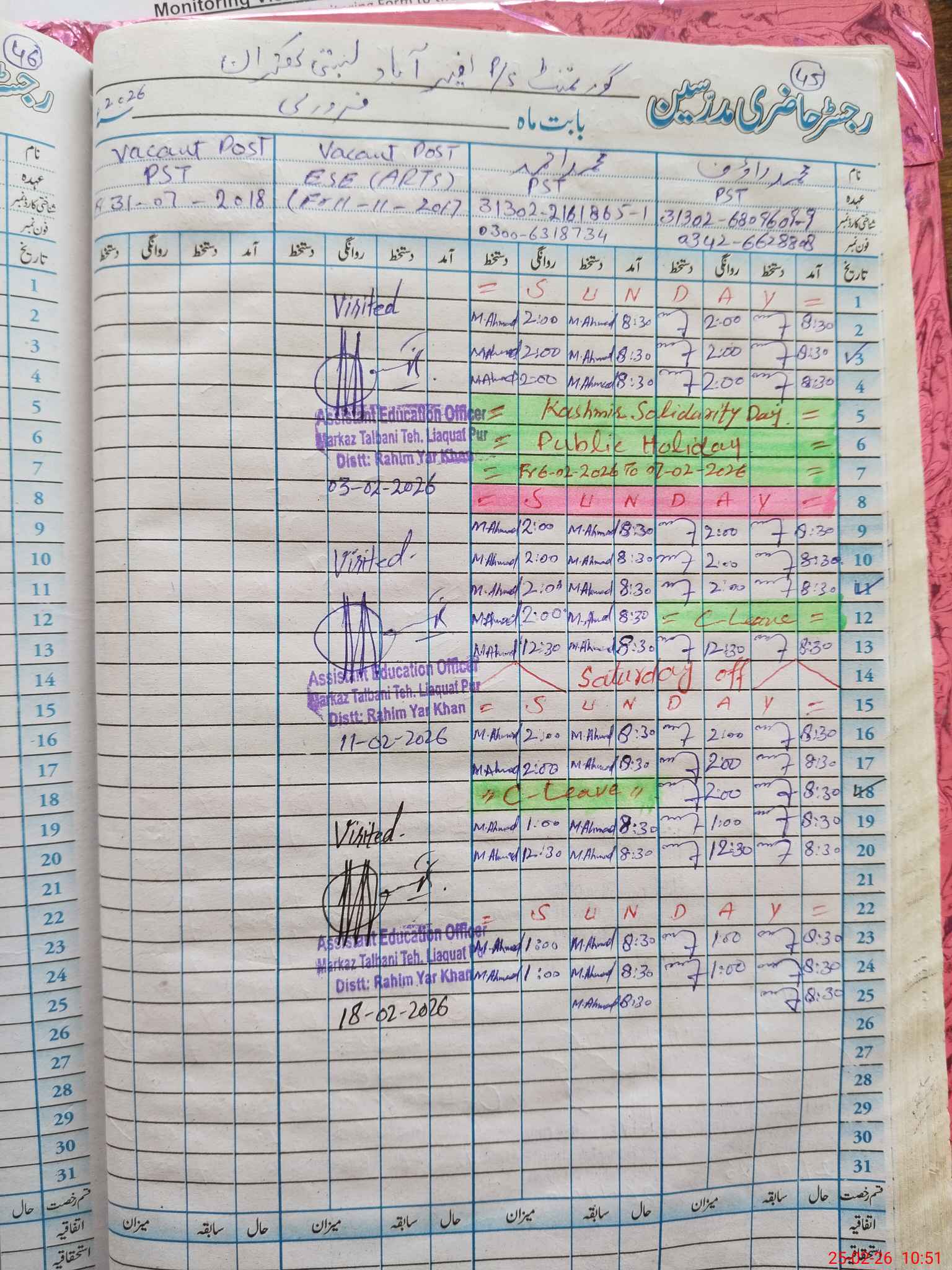 | Name: MU**** RA**** Designation: (School Headmaster's/Headmistress's) PST Phone/Cell Number: 03**** |