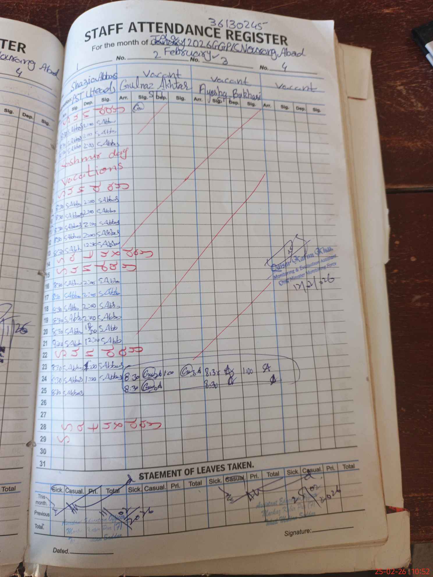 | CNIC | Full Name | Designation | R/C | Absence During Last Calender Month |