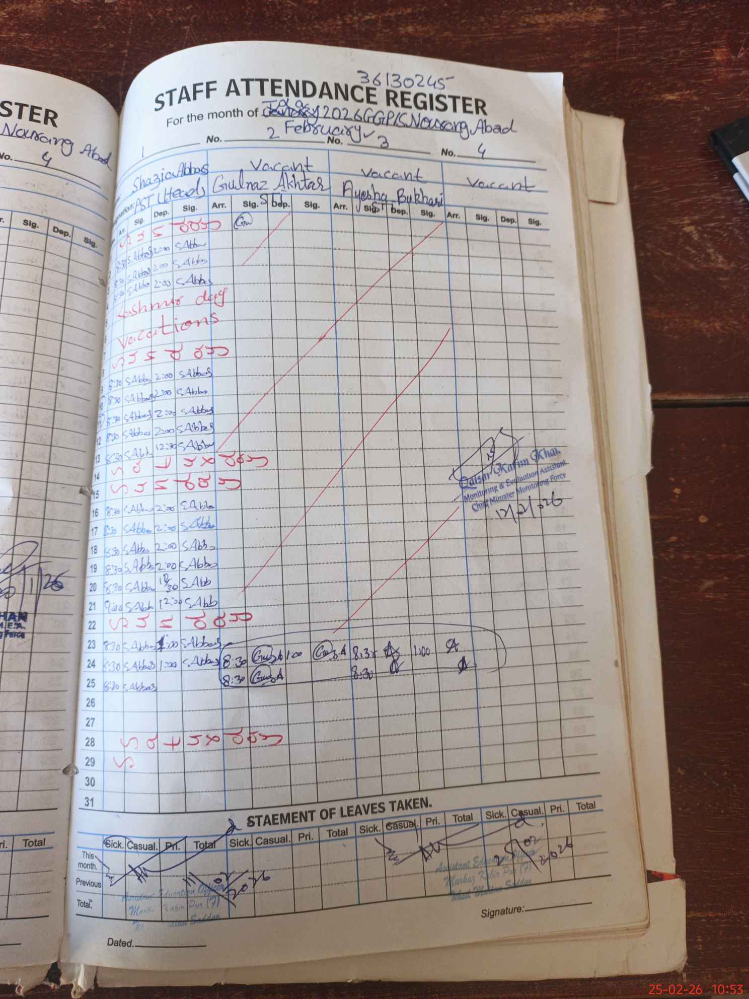 | Attendance Register | Head Teacher | MEA with School | Visit Proof |