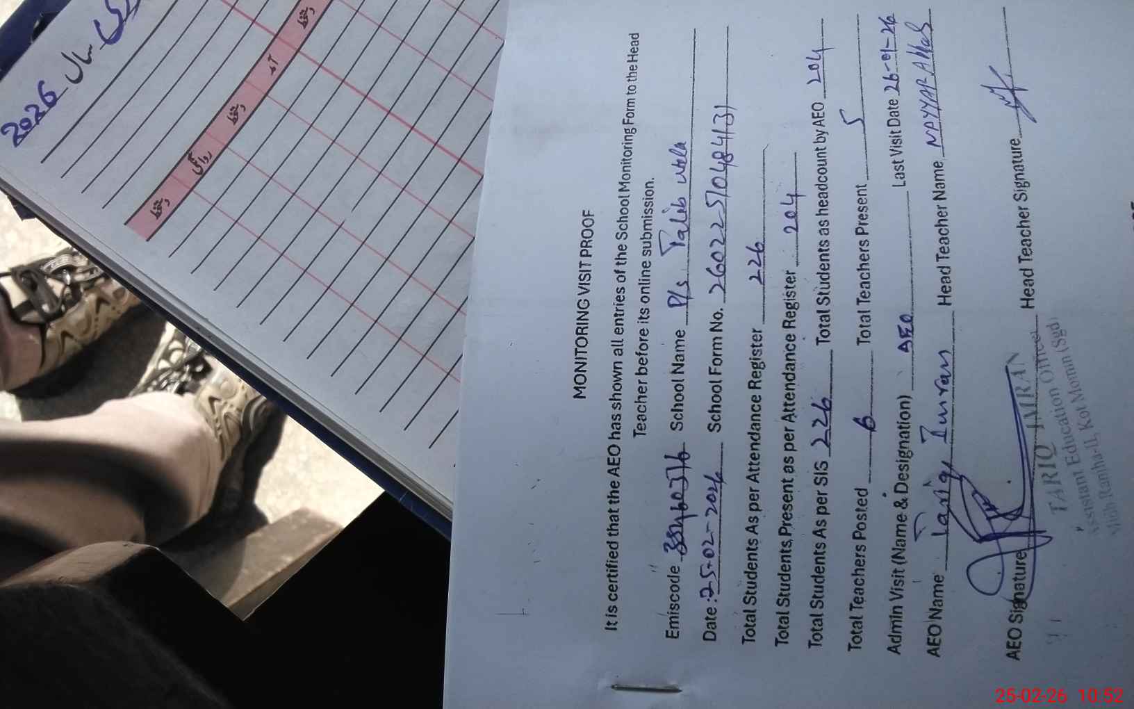 | Attendance Register | Head Teacher | MEA with School | Visit Proof |
