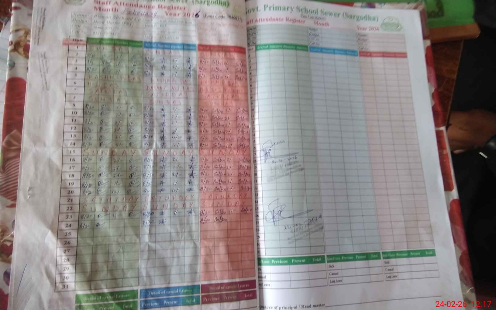 | Name: RI**** SH**** Designation: (School Headmaster's/Headmistress's) PST Phone/Cell Number: 03**** |