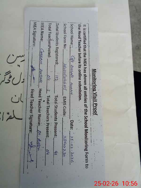 | EMIS Code: 38140230 | Name of School: GPS DAGGAR AWAN | |||