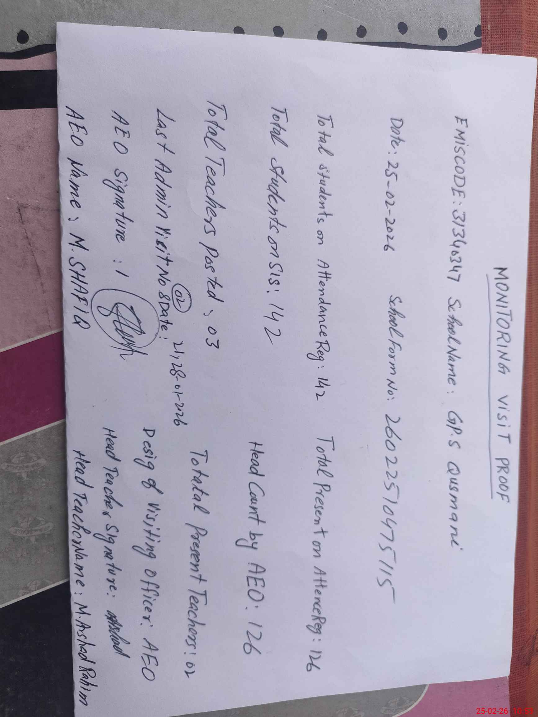 | Monitoring Date: 25-02-2026 | Start Time: 25-02-2026 09:52 AM | End Time: 25-02-2026 10:56 AM | Name of MEA: Mu**** Sh**** | |
