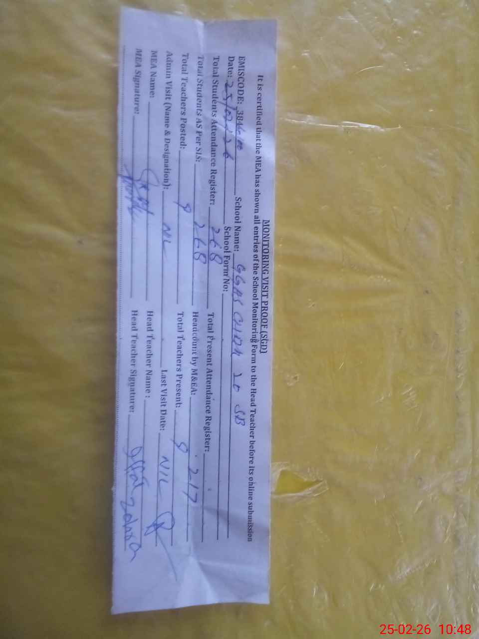 | Certified that this School was Inspected by the Undersigned MEA/DMO Today and the Information Stated Above is as Per Record. | |||||