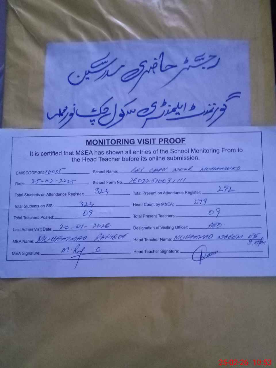 | EMIS Code: 39210035 | Name of School: GES CHAK NOOR MUHAMMAD | |||