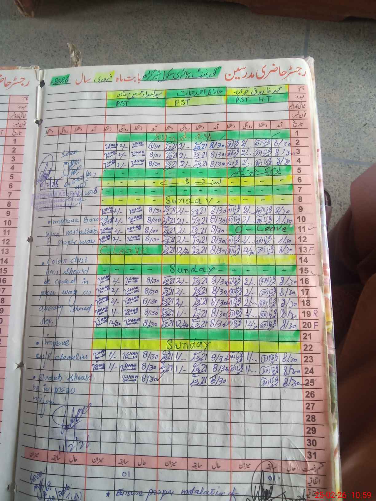 | CNIC | Full Name | Designation | R/C | Absence During Last Calender Month |
