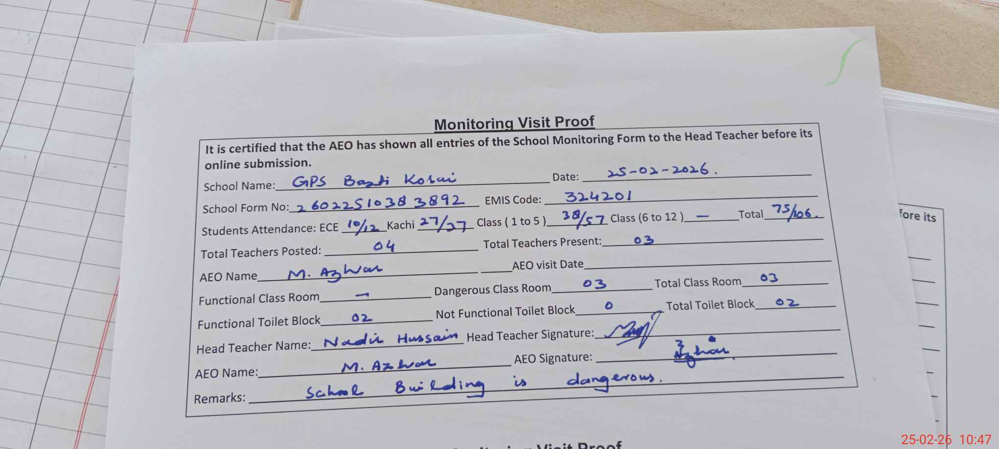 | EMIS Code: 32420156 | Name of School: GPS BASTI KORAI | |||