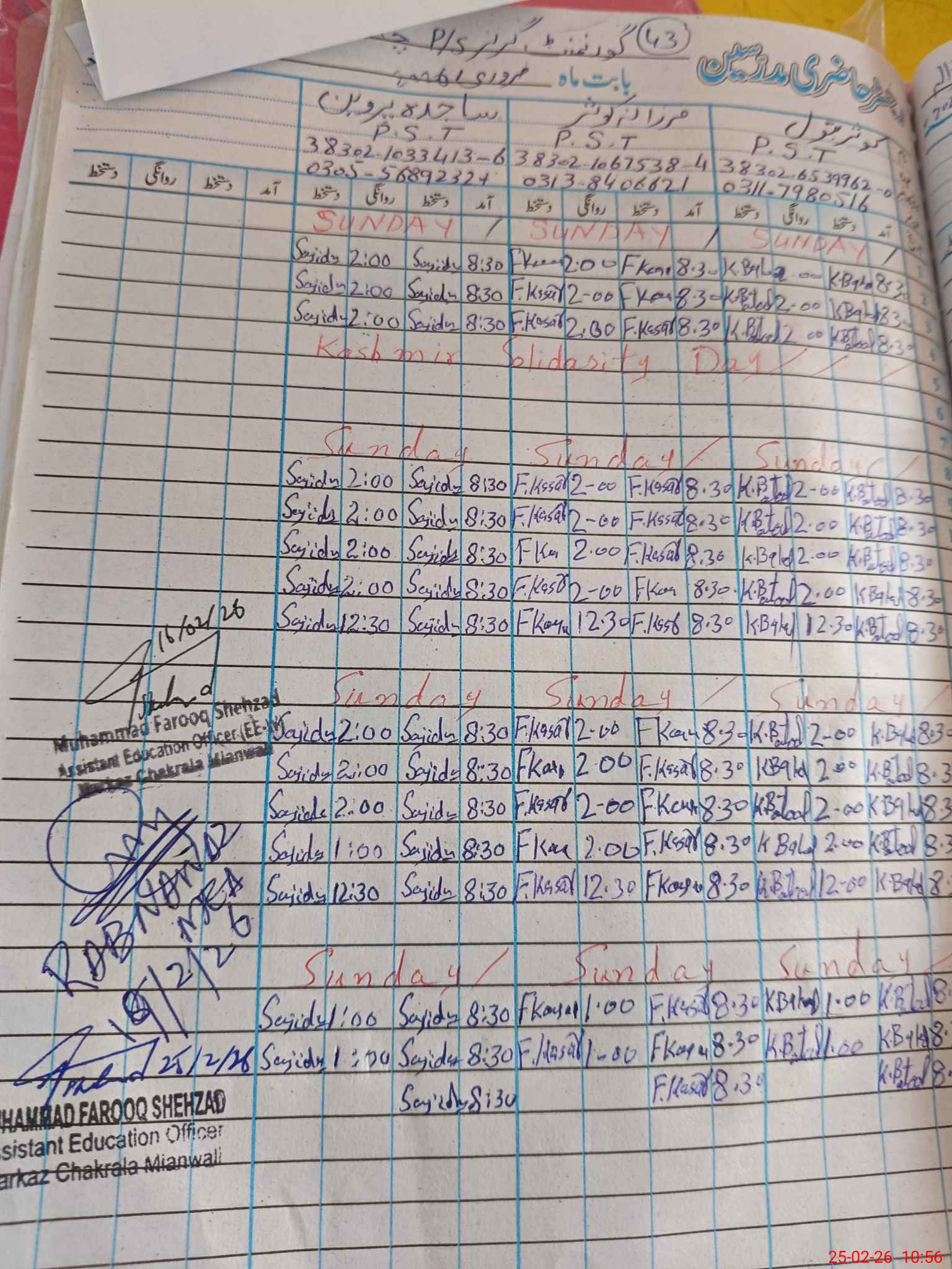 | Name: Ka**** Ba**** Na**** Designation: (School Headmaster's/Headmistress's) PST/PTC/JV Phone/Cell Number: 03**** |