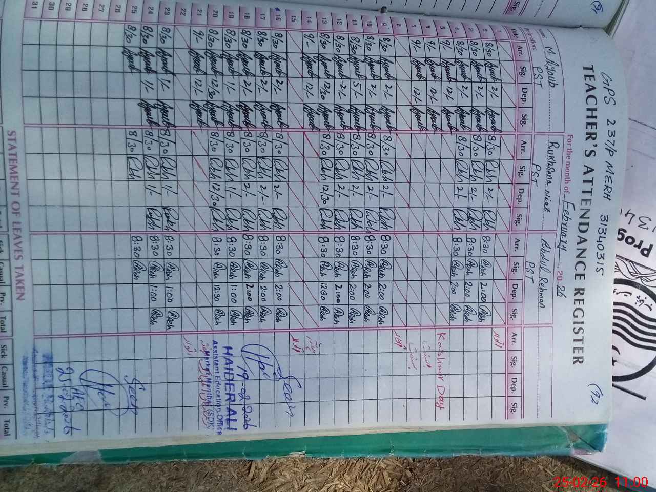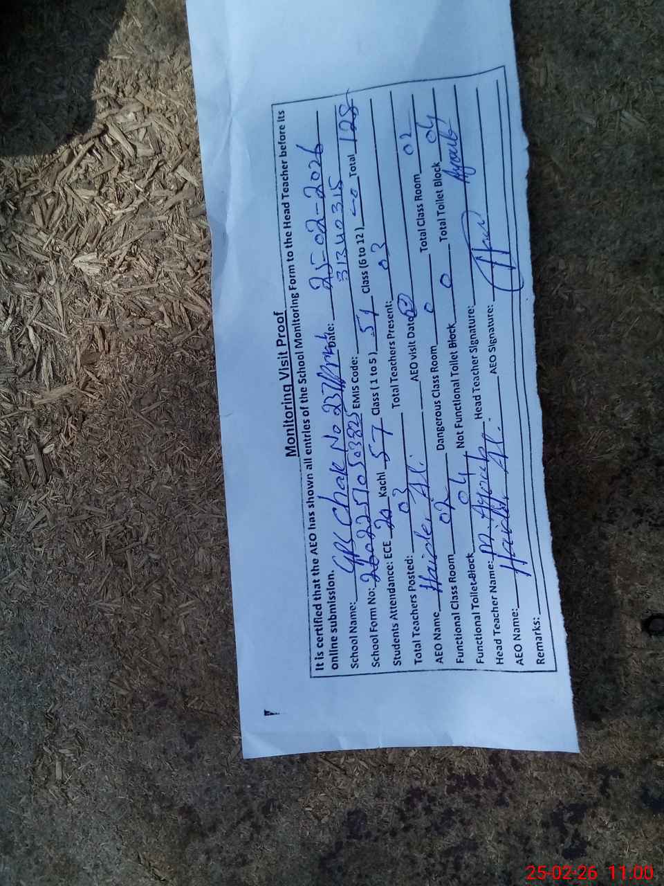 | Attendance Register | Head Teacher | MEA with School | Visit Proof |