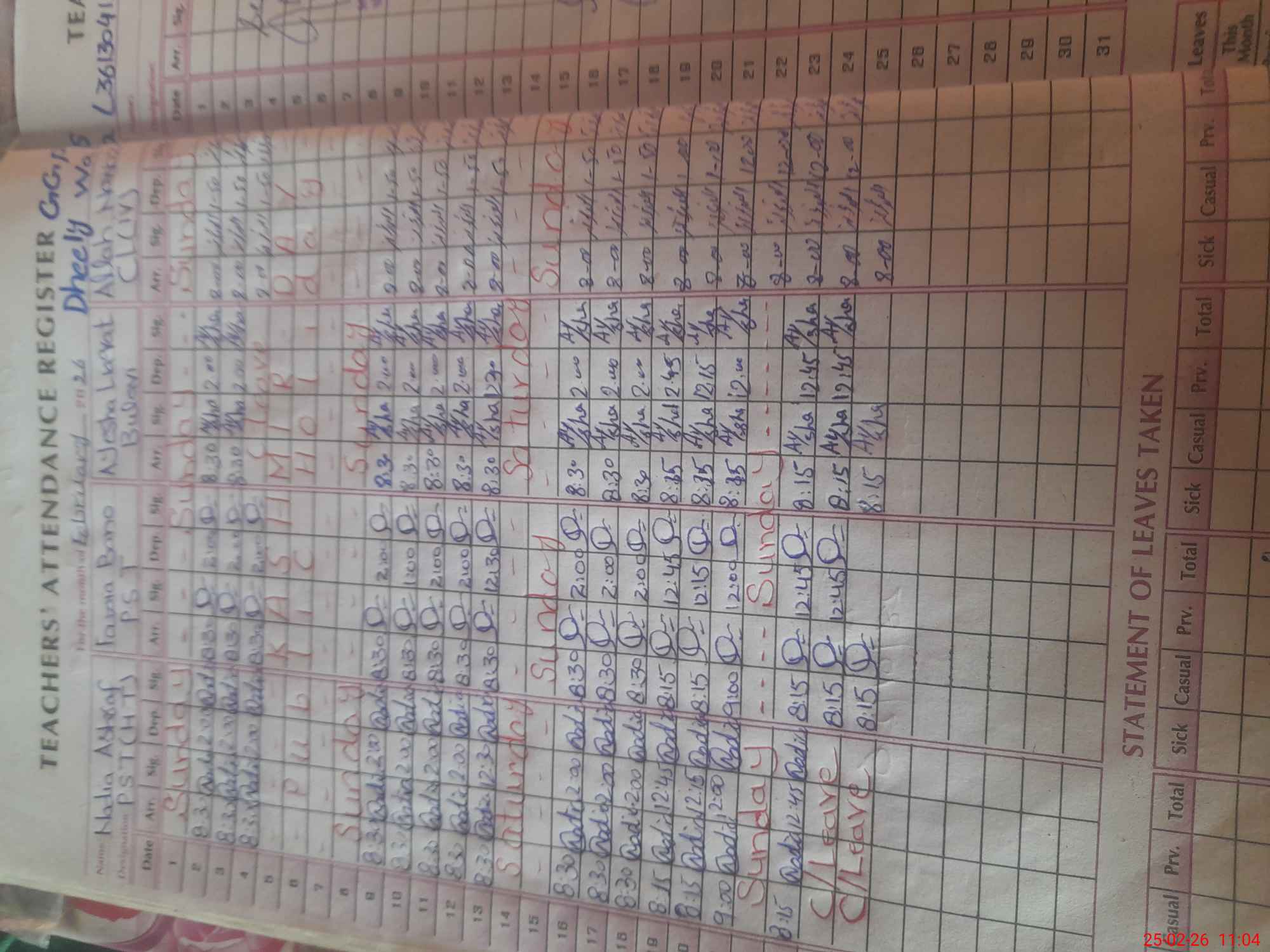 | 33**** | Na**** As**** | PST Science/Maths | Regular | 0 | 0 | 0 | 0 | 0 | 0 | 0 | 0 | 0 | Casual |