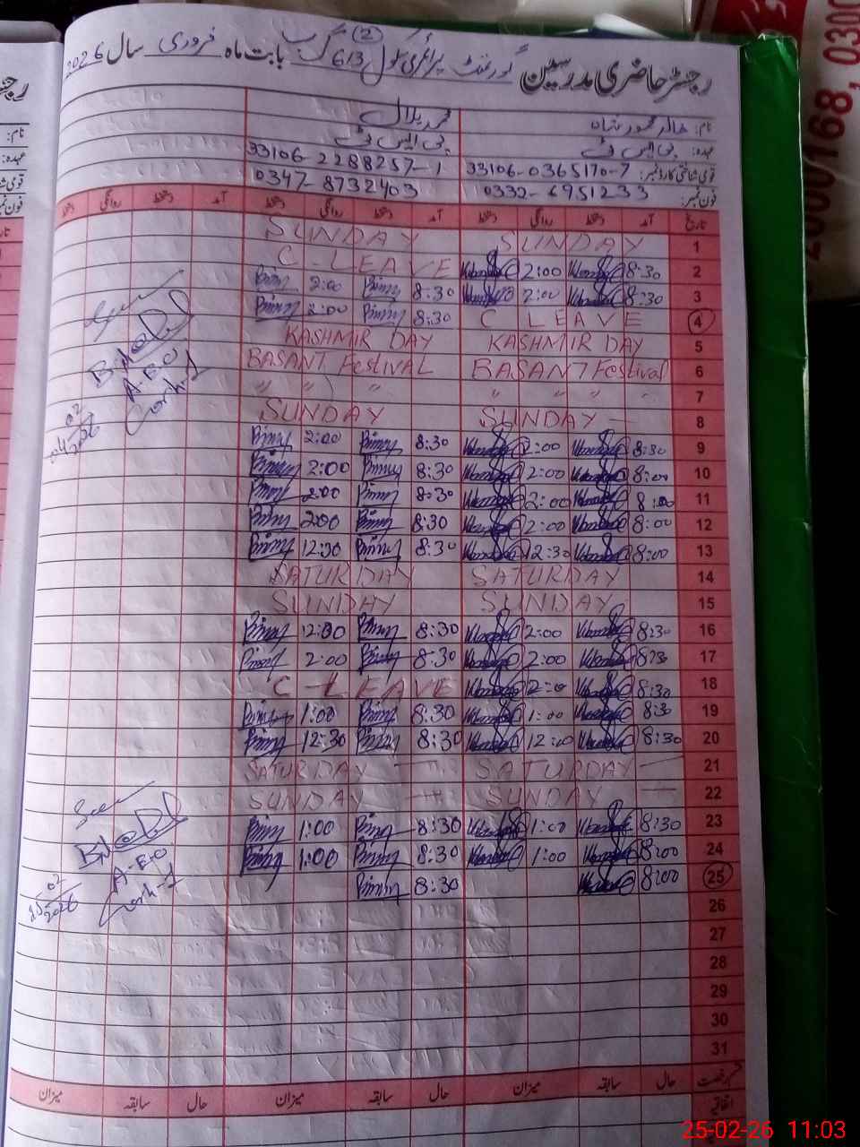 | Name: KH**** MA**** SH**** Designation: (School Headmaster's/Headmistress's) PST Phone/Cell Number: 03**** |