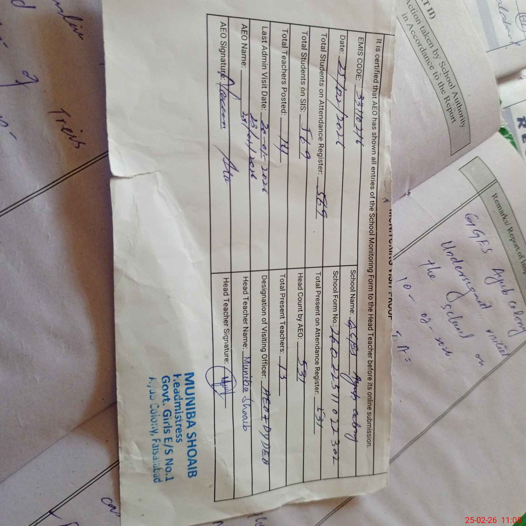 | EMIS Code: 33110216 | Name of School: GGES NO.1 AYUB COLONY | |||