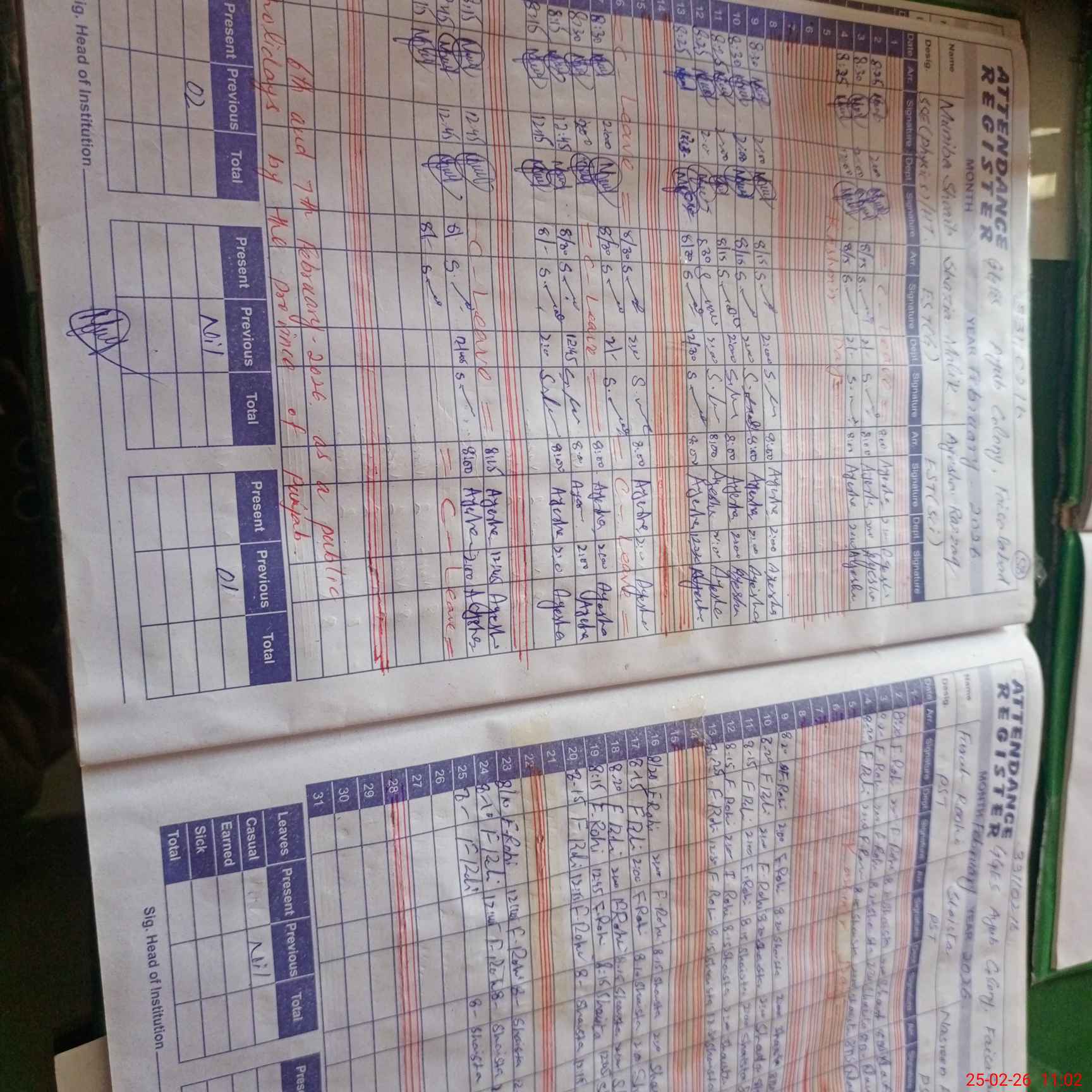 | No. of Students Present - Male | 0 | 0 | 4 | 1 | 2 | 0 | 0 | 0 | 0 | 0 | 25 | |||||