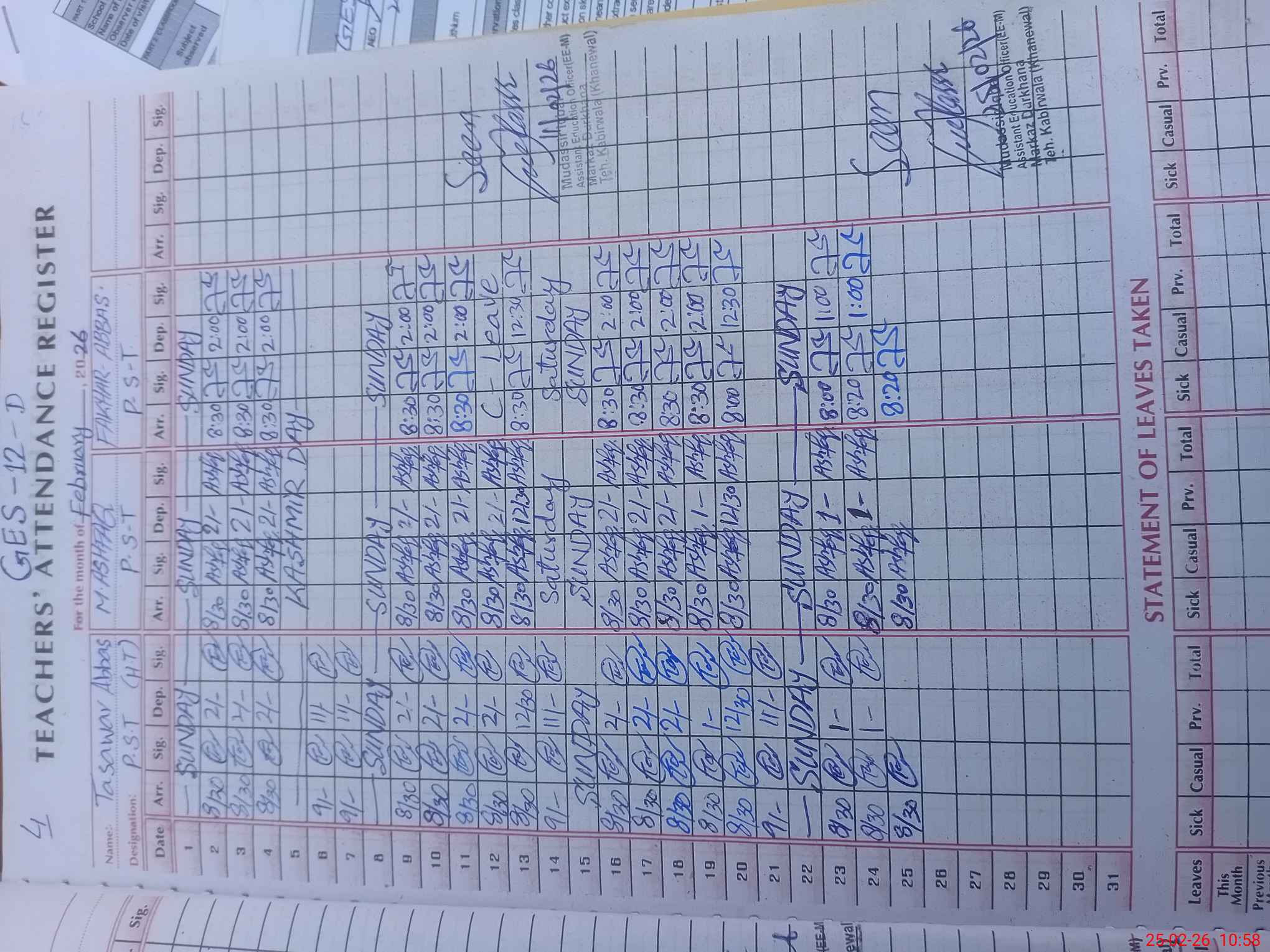 | Name: Ta**** Ab**** Designation: (School Headmaster's/Headmistress's) PST Phone/Cell Number: 03**** |