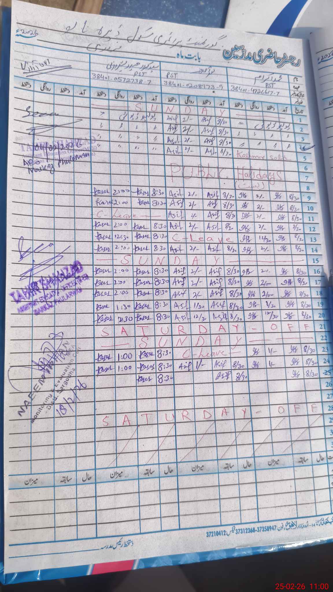 | Name: Mu**** Ik**** Designation: (School Headmaster's/Headmistress's) PST Phone/Cell Number: 03**** |