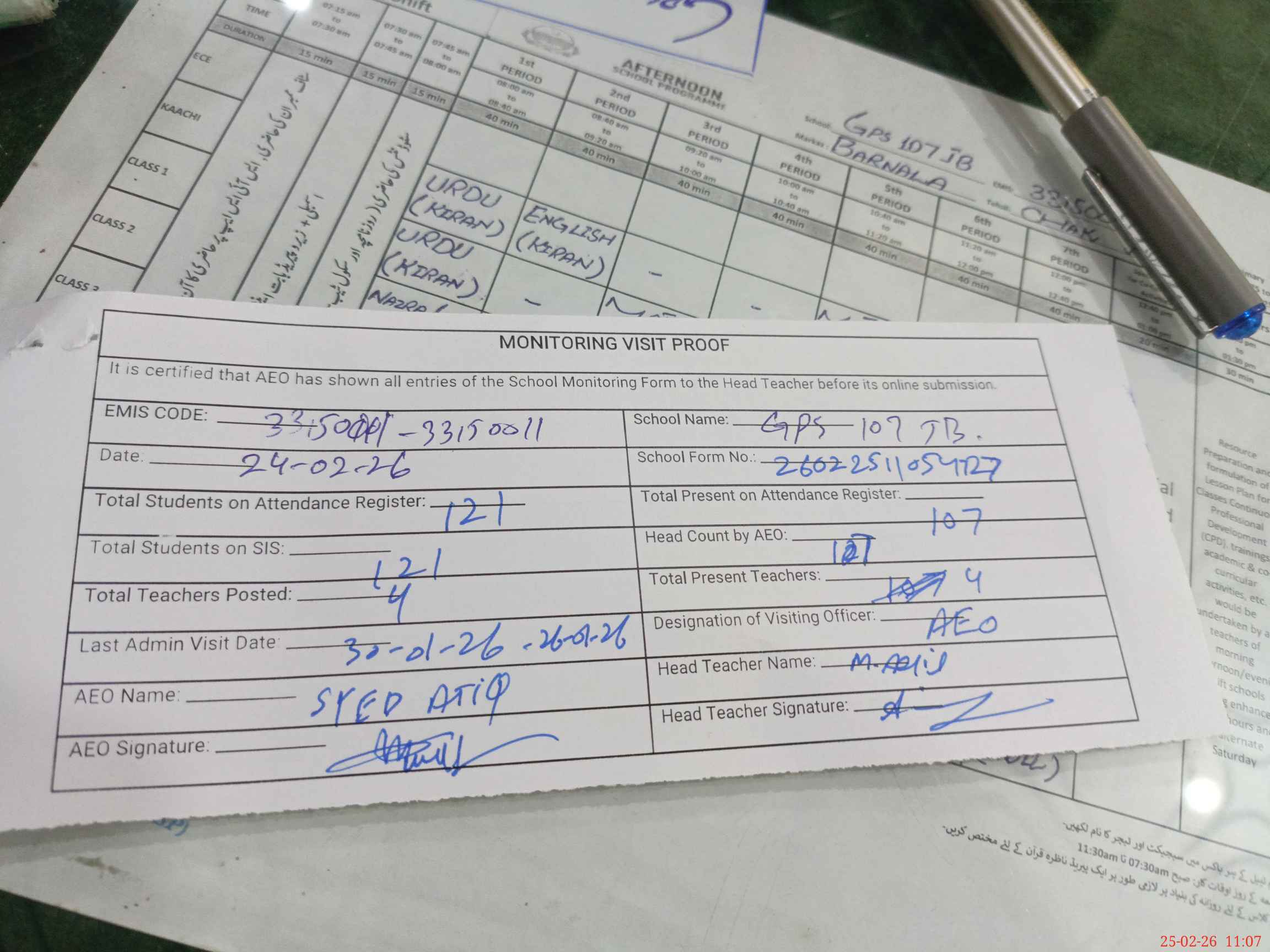 | EMIS Code: 33150011 | Name of School: GPS 107 JB | |||