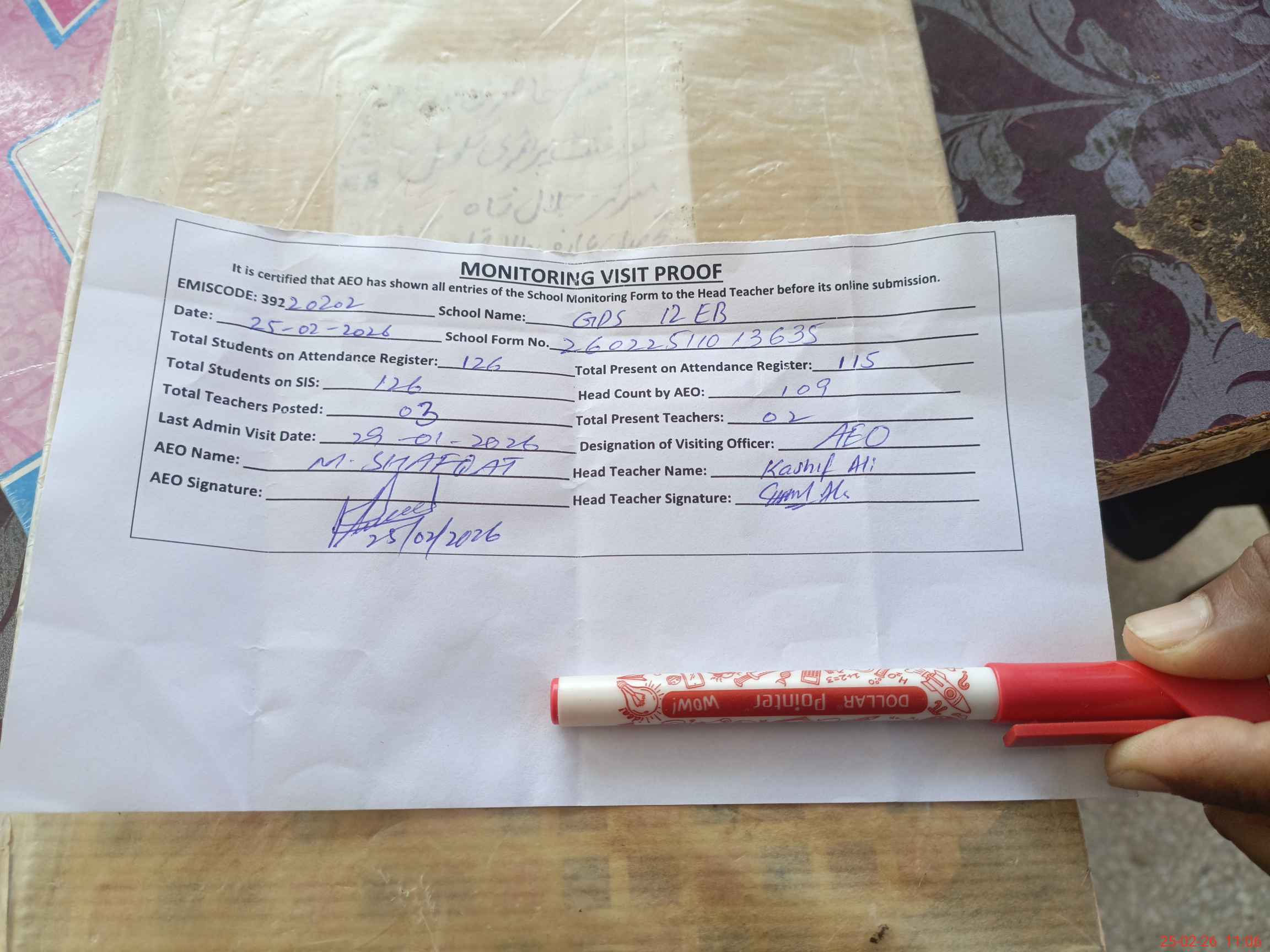 | EMIS Code: 39220202 | Name of School: GPS 12 EB P/O 10/E.B ARIF WALA | |||