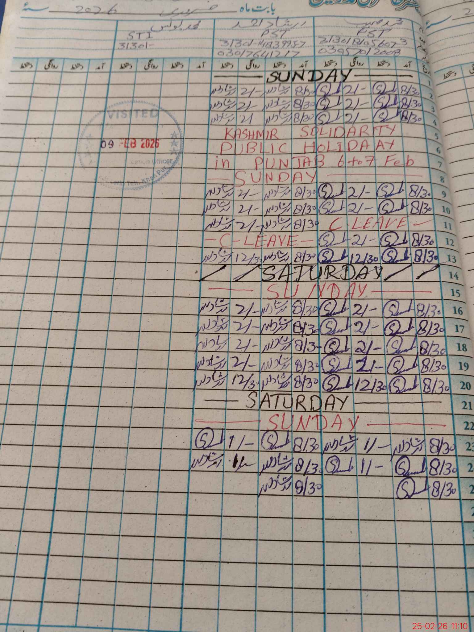| Name: IR**** AH**** Designation: (School Headmaster's/Headmistress's) PST Phone/Cell Number: 03**** |