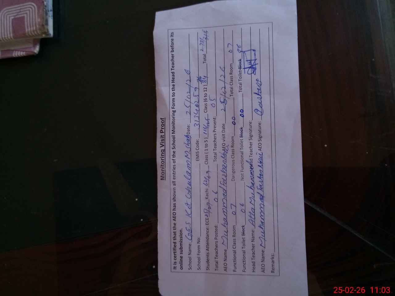 | EMIS Code: 31340259 | Name of School: GES KOT GHULAM MIRAN SHAH | |||