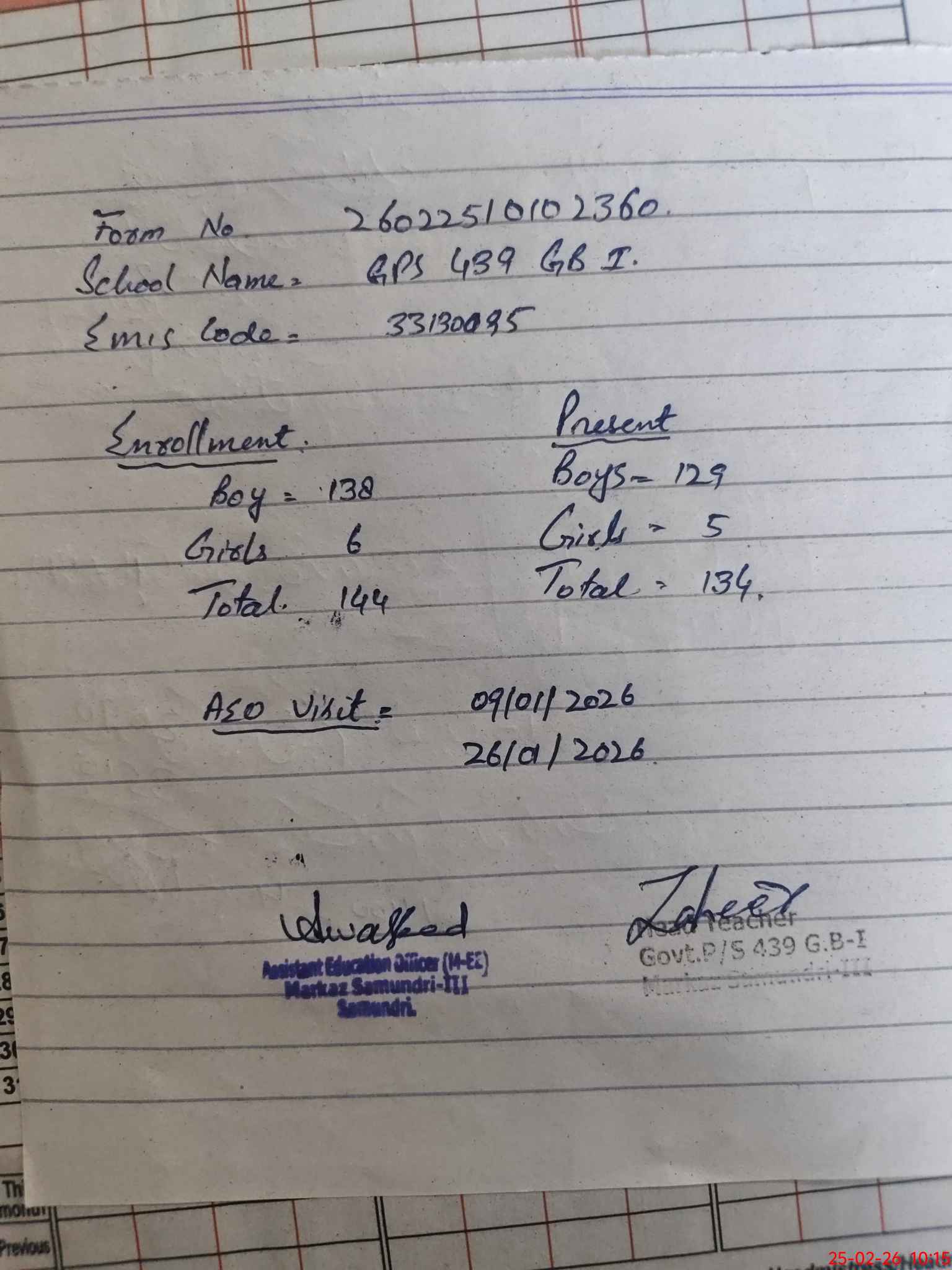 | EMIS Code: 33130095 | Name of School: GPS CHAK 439 GB I SAMUNDRI | |||