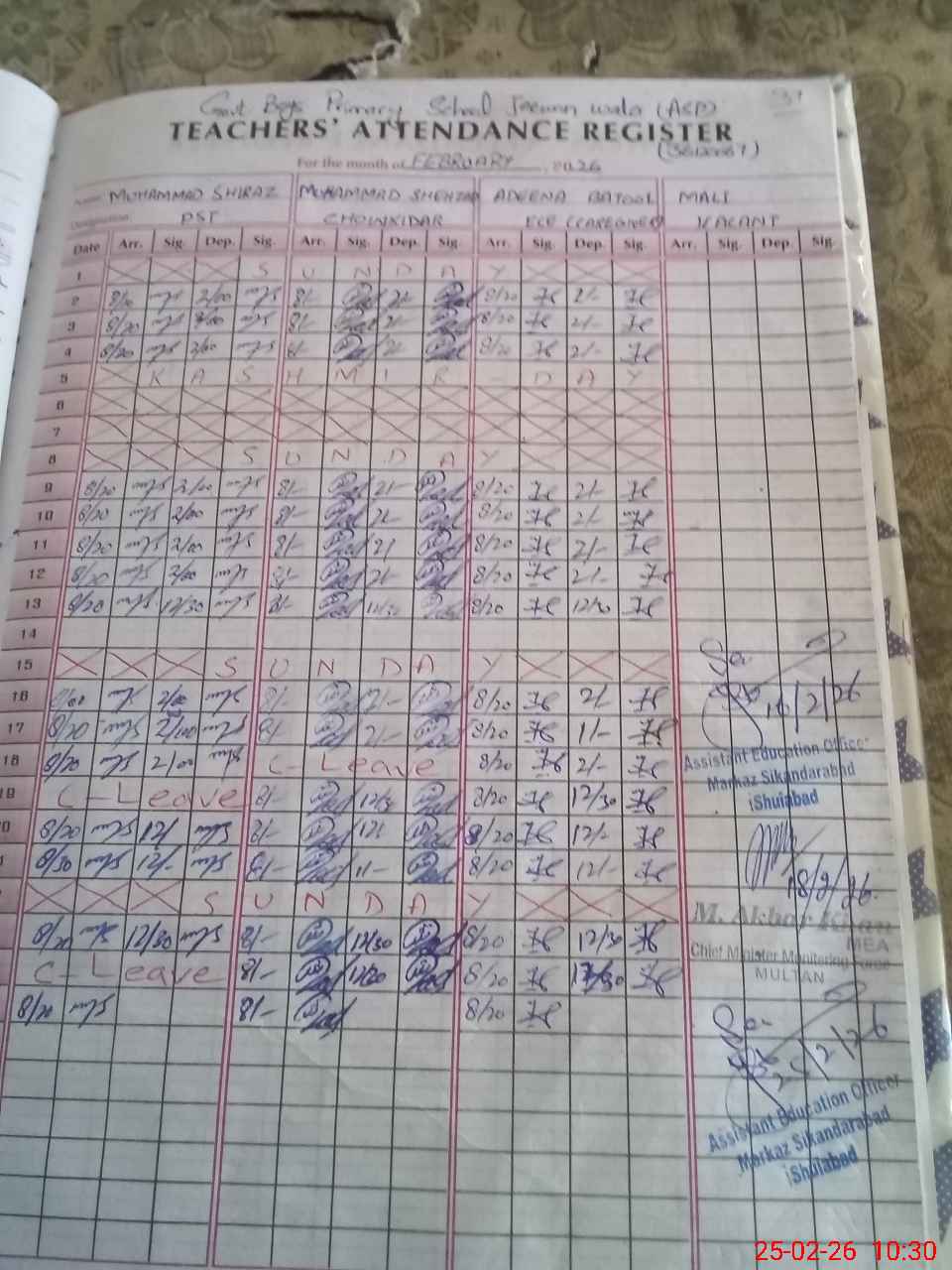 | District: MULTAN | Tehsil: SHUJA ABAD | Markaz: SIKANDARABAD - MALE | Level: Primary | |