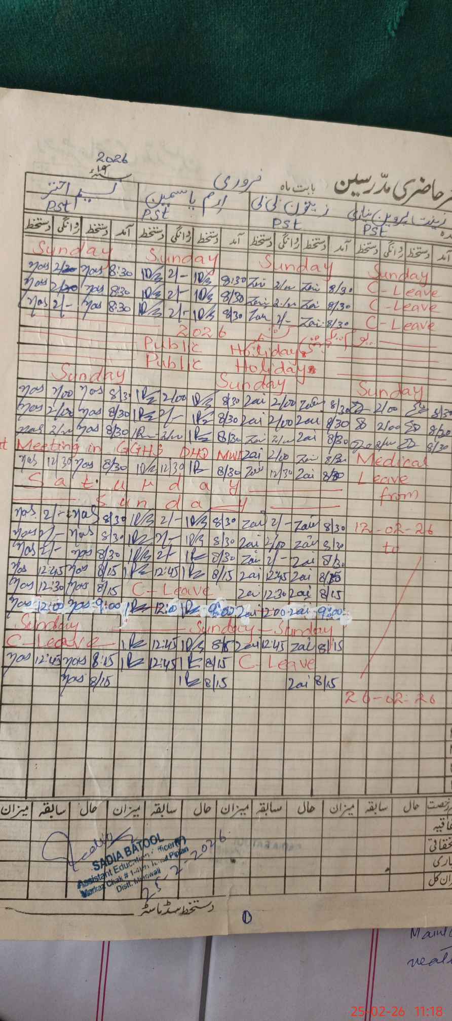 | CNIC | Full Name | Designation | R/C | Absence During Last Calender Month |