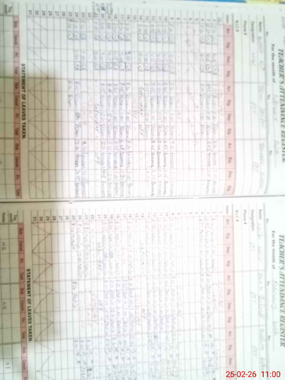 | Remarks (Use Separate Page if Required): class 4 in 2nd shift and students attendance register in lock | |||||