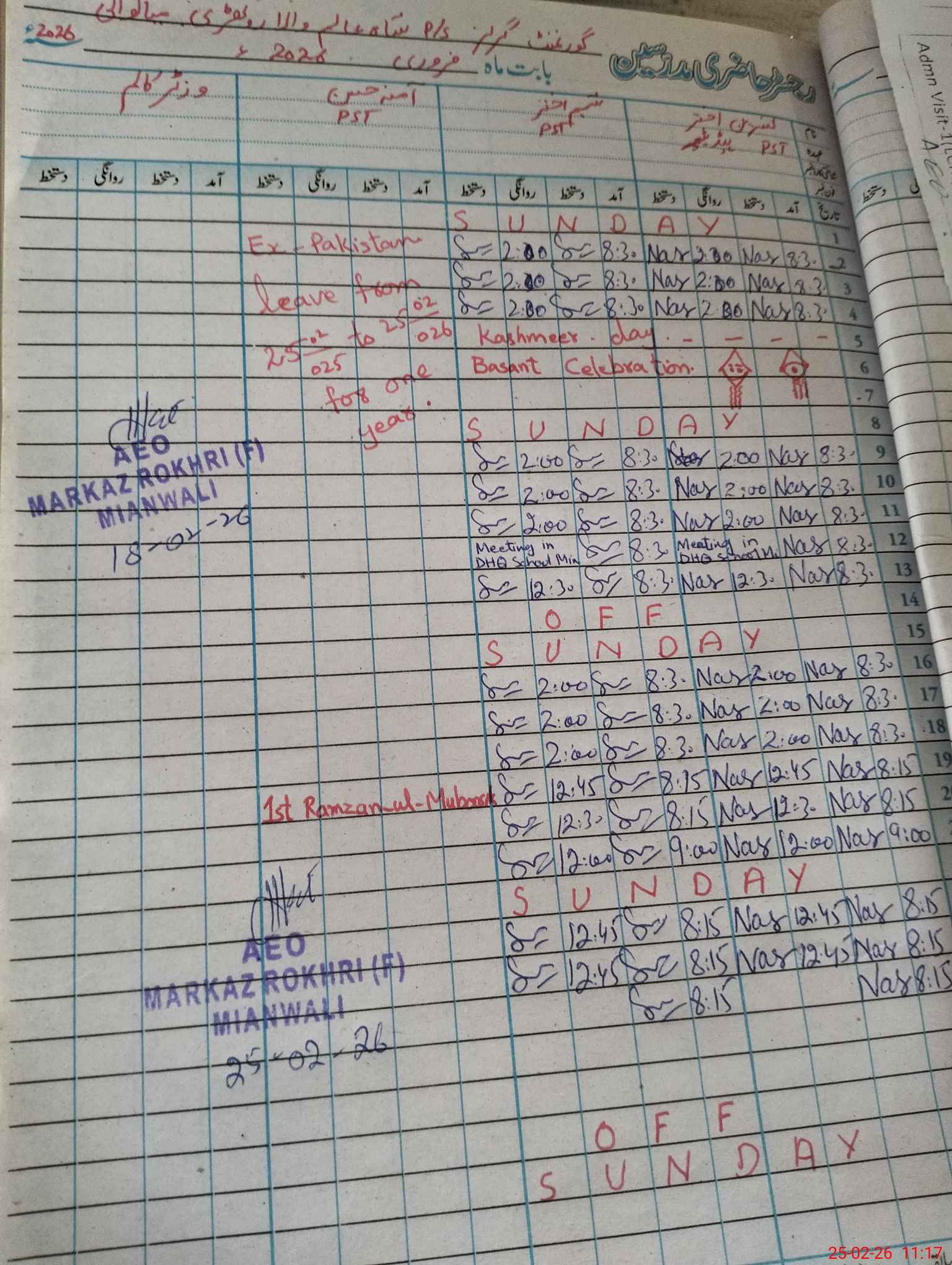 | District: MIANWALI | Tehsil: MIANWALI | Markaz: ROKHRI-FEMALE | Level: Primary | |