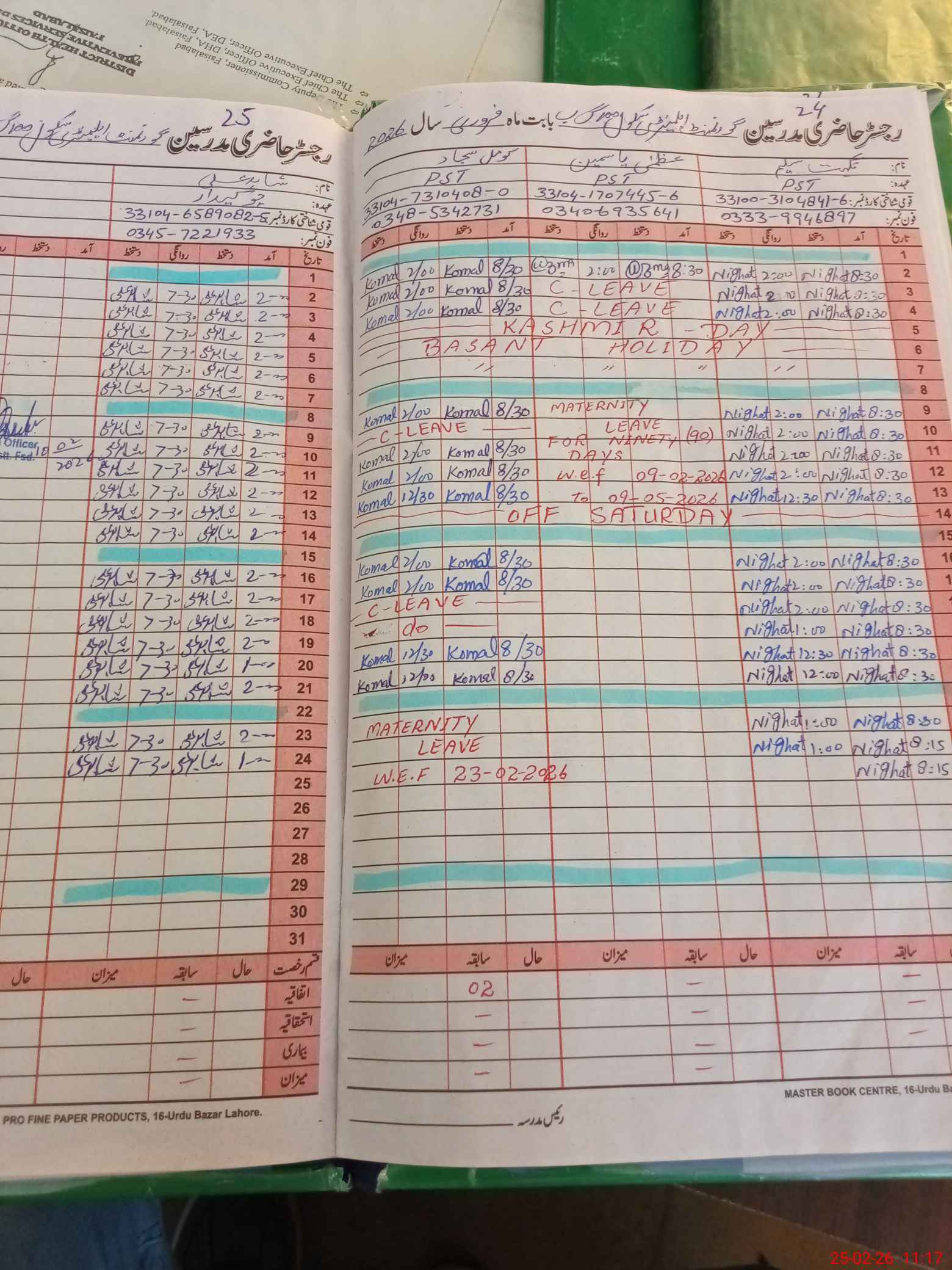 | Leave | Duty | Absent | Maternity | Medical | Ex- Pak |