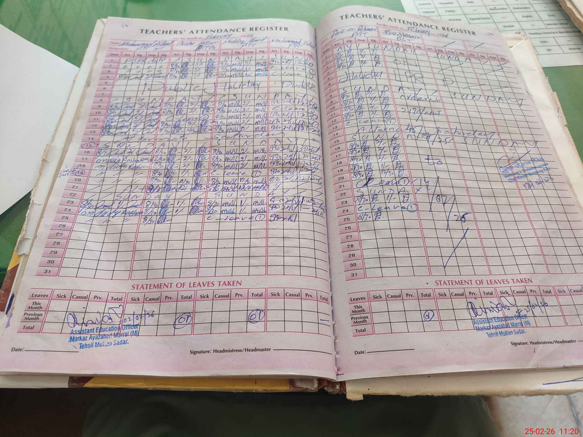 | Attendance Register | Head Teacher | MEA with School | Visit Proof |