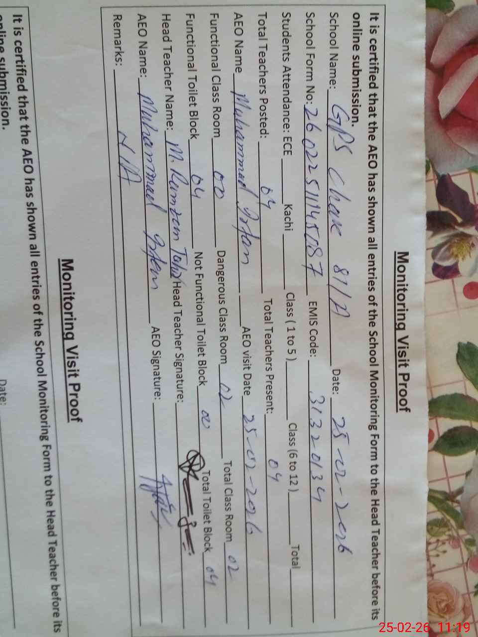 | EMIS Code: 31320134 | Name of School: GPS CHAK 81/A | |||
