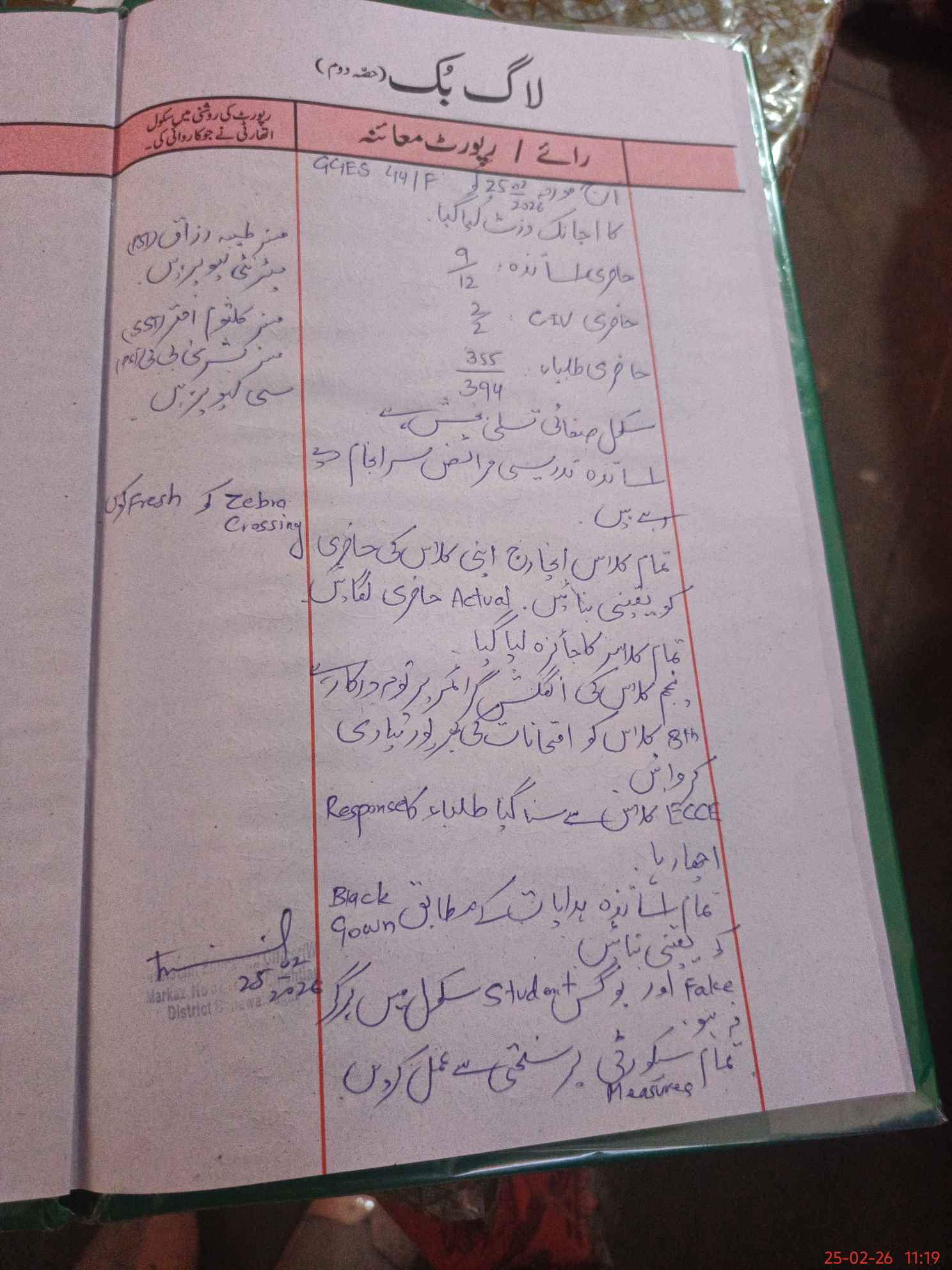| Certified that this School was Inspected by the Undersigned MEA/DMO Today and the Information Stated Above is as Per Record. | |||||