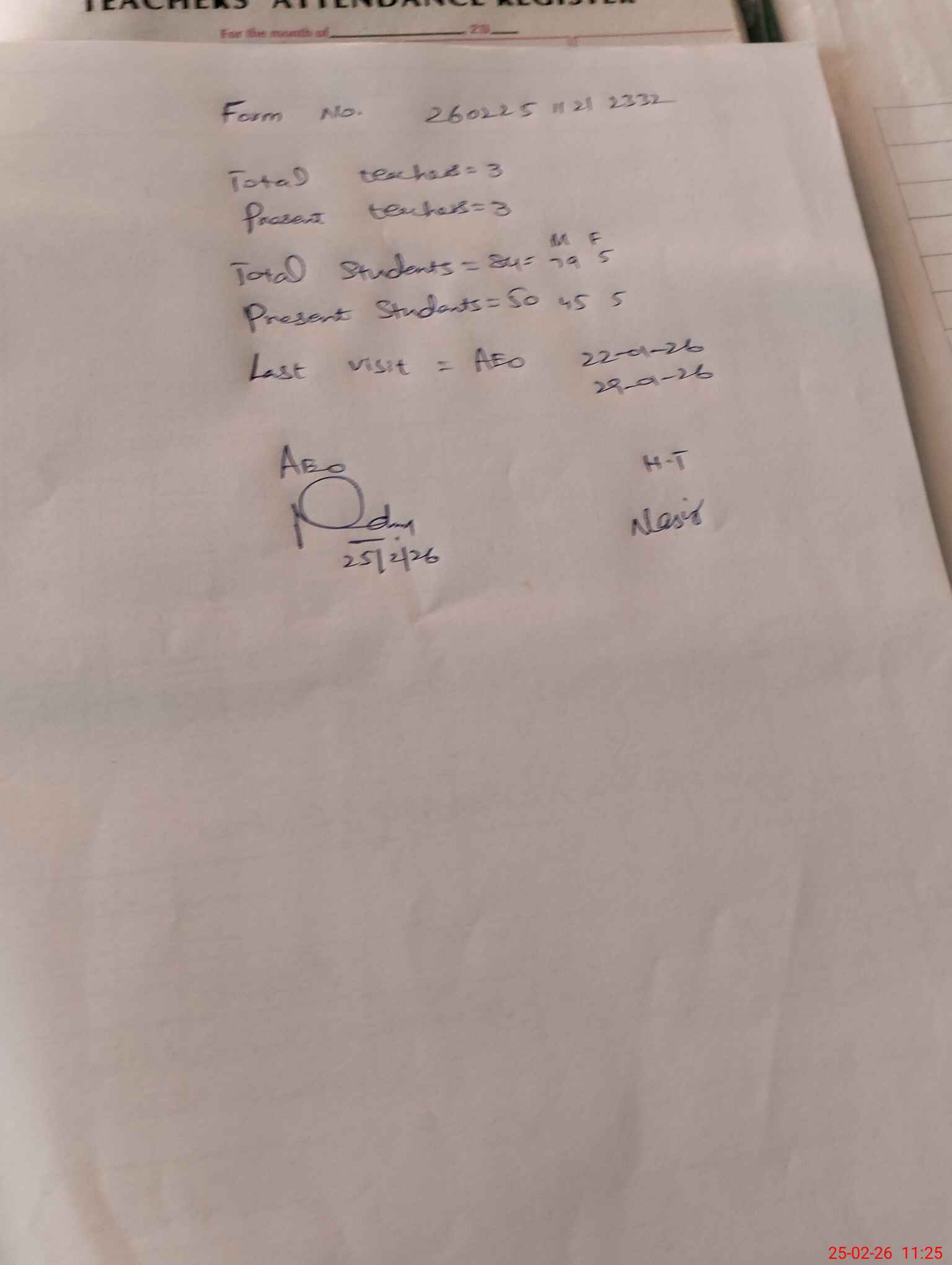 | Attendance Register | Head Teacher | MEA with School | Visit Proof |