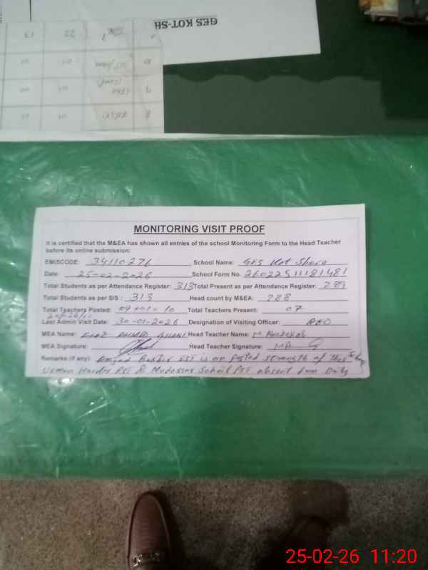 | EMIS Code: 34110276 | Name of School: GES KOT SHERA | |||