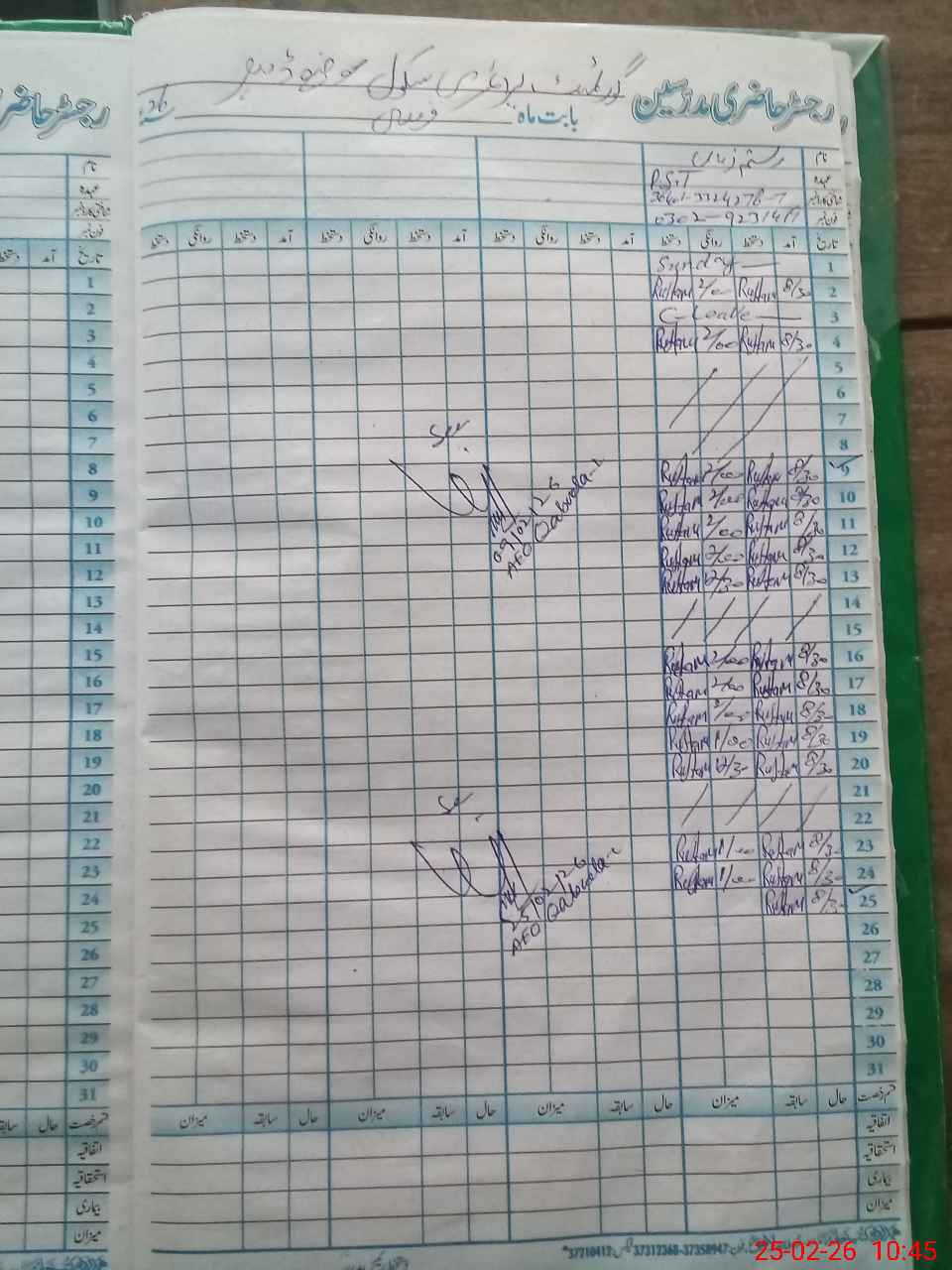 | Name: RU**** ZA**** Designation: (School Headmaster's/Headmistress's) PST Phone/Cell Number: 03**** |