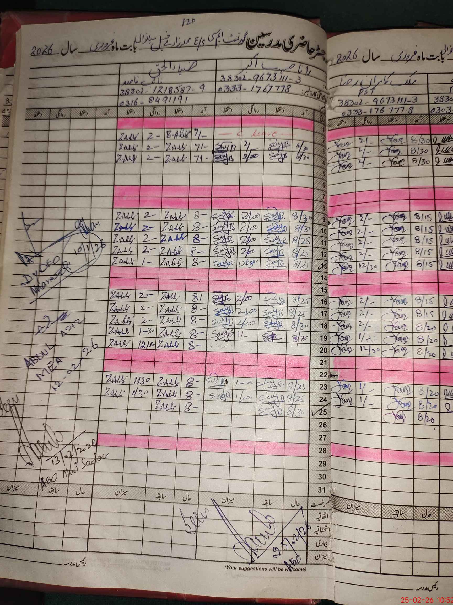 | CNIC | Full Name | Designation | R/C | Absence during last cal. month |