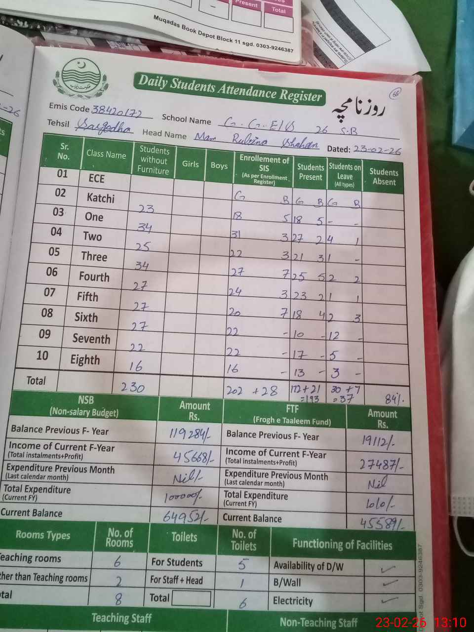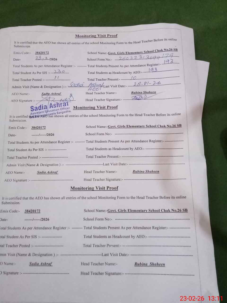 | EMIS Code: 38420172 | Name of School: GGES CHAK NO.26 SB | |||
