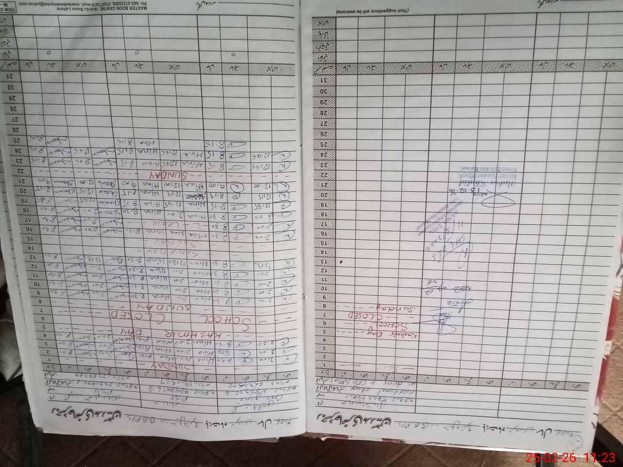 | CNIC | Full Name | Designation | R/C | Absence During Last Calender Month |