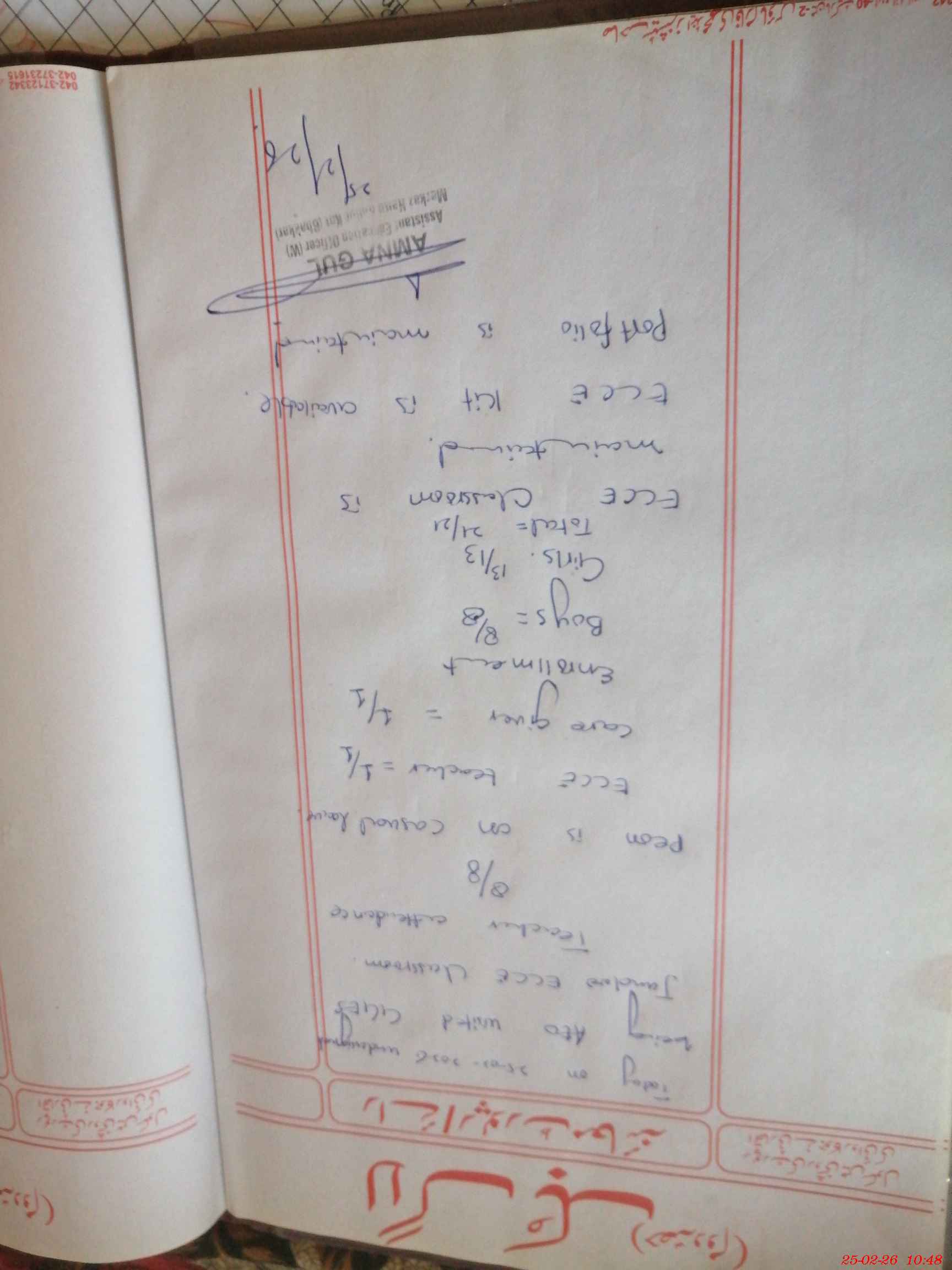 | Certified that this School was Inspected by the Undersigned MEA/DMO Today and the Information Stated Above is as Per Record. | |||||