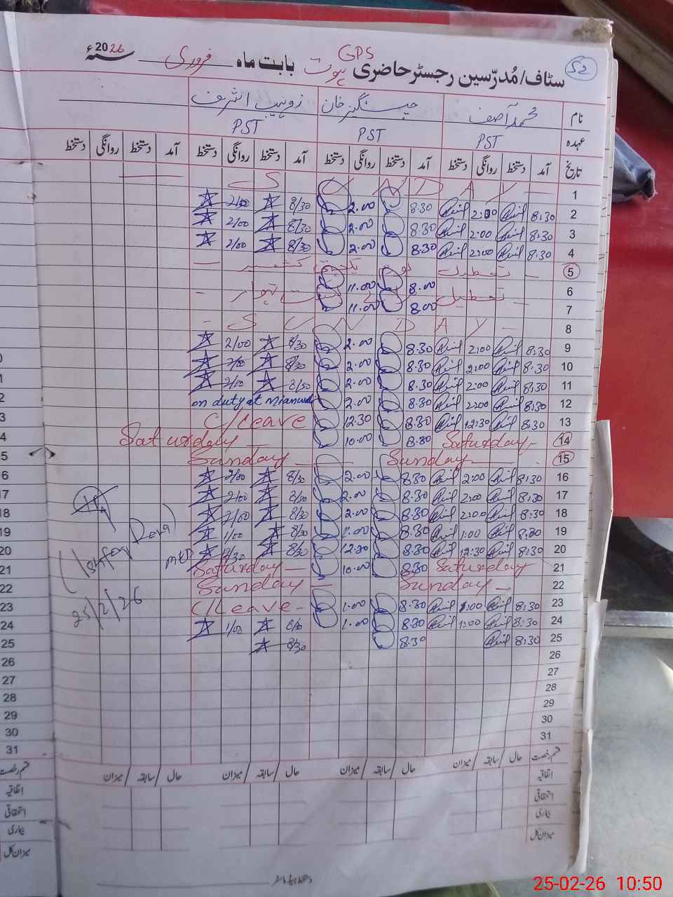 | CNIC | Full Name | Designation | R/C | Absence During Last Calender Month |