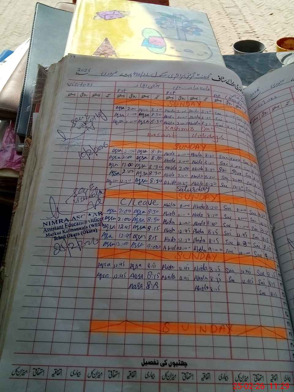 | District: OKARA | Tehsil: OKARA | Markaz: KARMAN WALA - FEMALE | Level: Primary | |