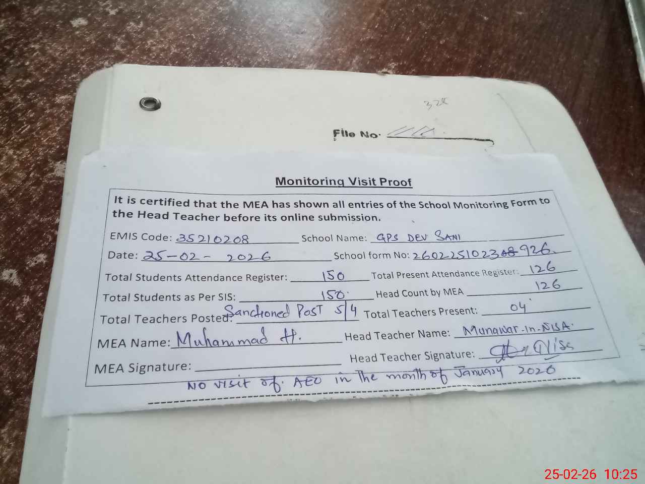 | EMIS Code: 35210208 | Name of School: GPS DEVSANI | |||