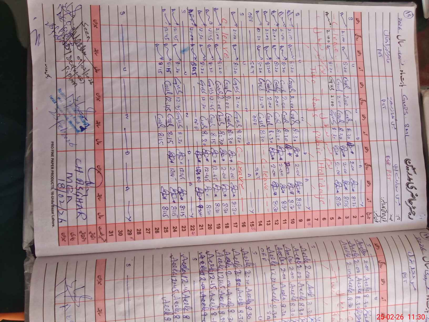 | CNIC | Full Name | Designation | R/C | Absence During Last Calender Month |