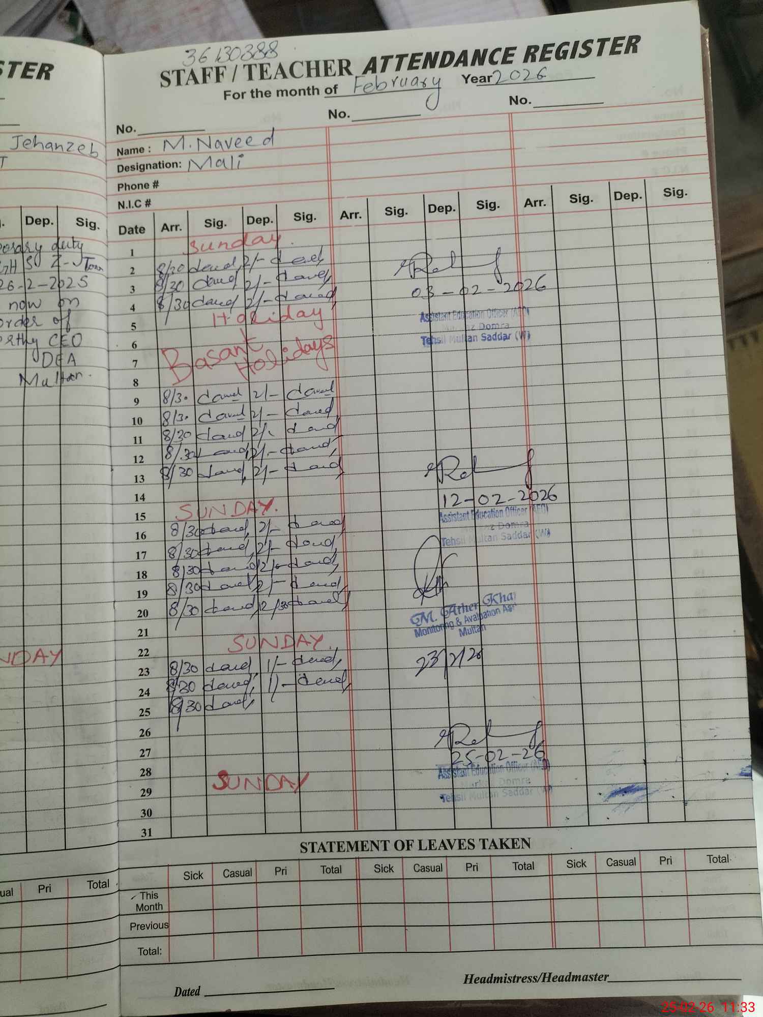 | 36**** | Ra**** Je**** | PST Science/Maths | Regular | 0 | 0 | 0 | 0 | 0 | 0 | 0 | 0 | 0 | Absent (Un-Authorized) |