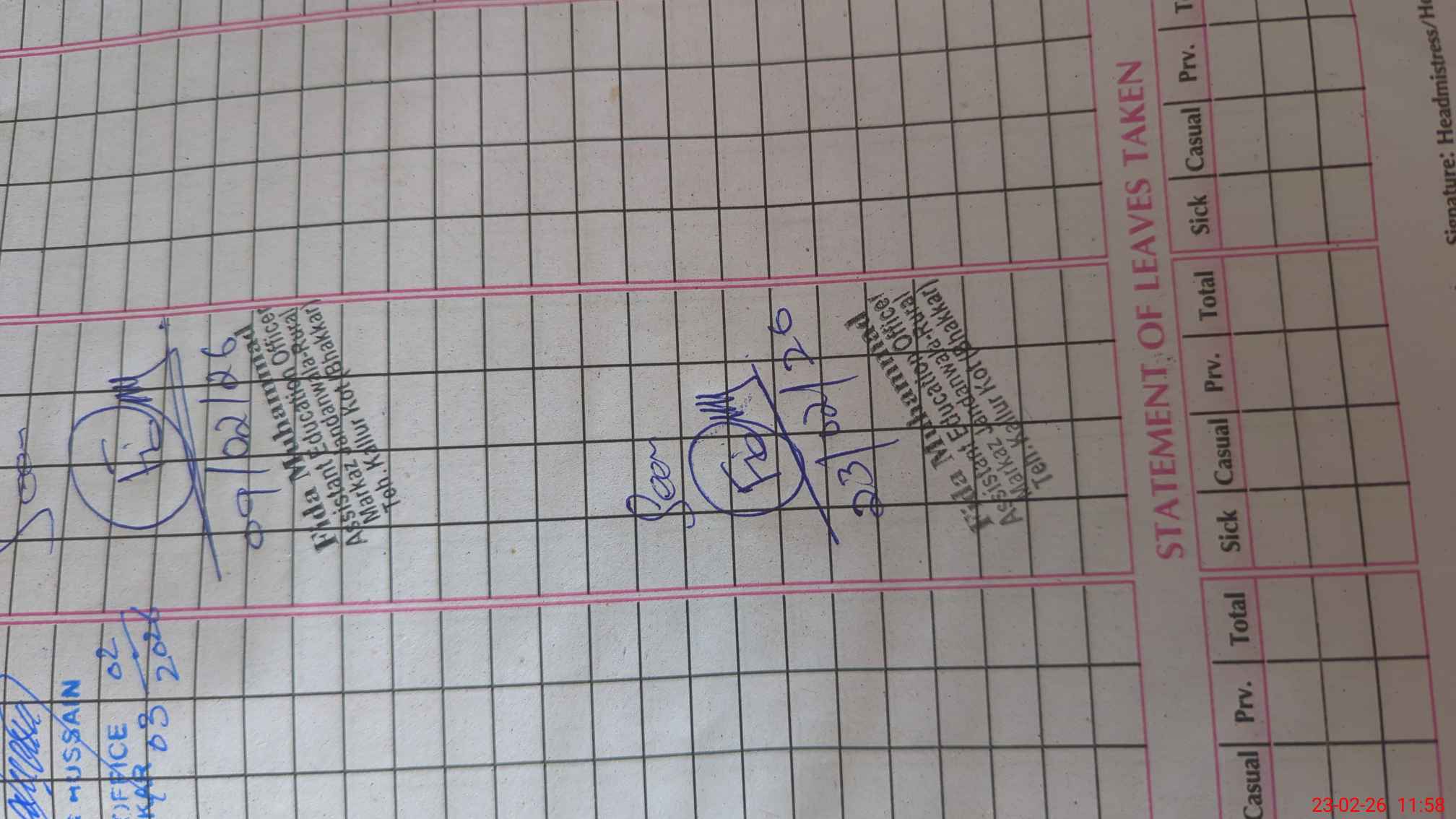 | Name: Mu**** Ra**** Designation: (School Headmaster's/Headmistress's) PTC/JV Phone/Cell Number: 03**** |