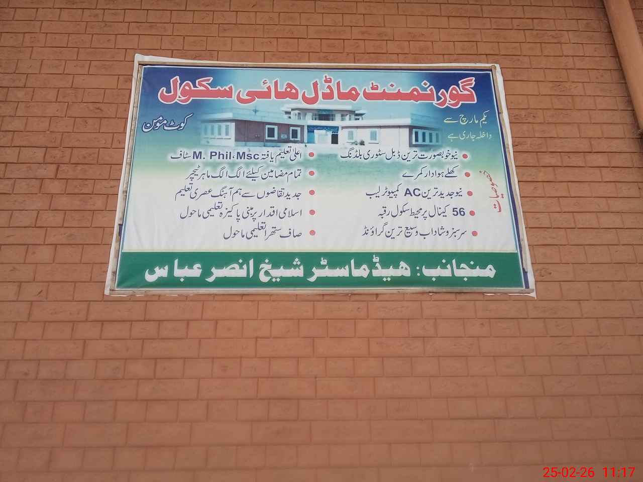 | EMIS Code: 38460900 | Name of School: GHS MODEL KOT MOMIN | |||