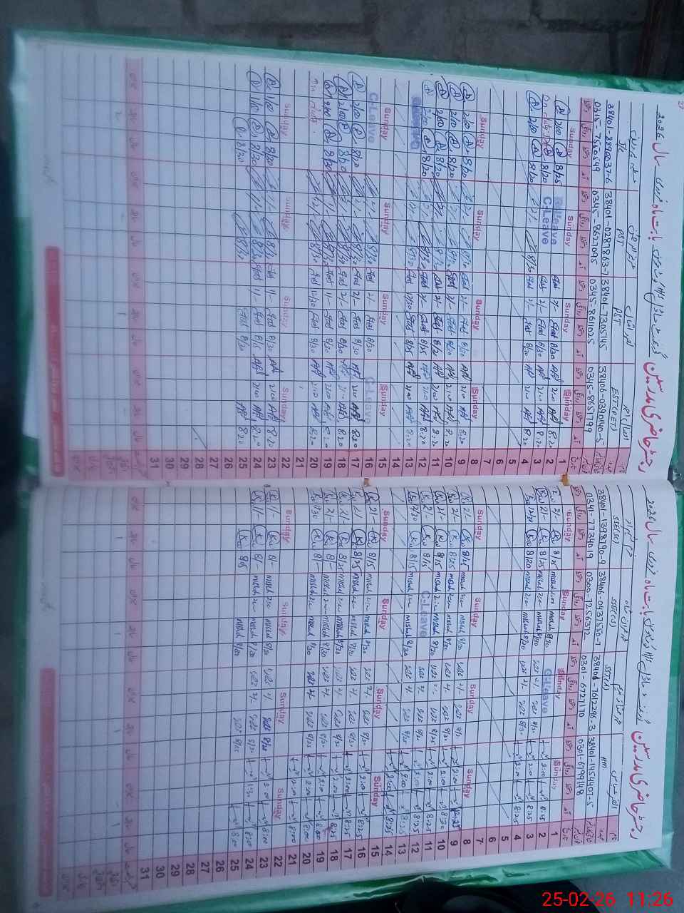 | Leave | Duty | Absent | Maternity | Medical | Ex- Pak |