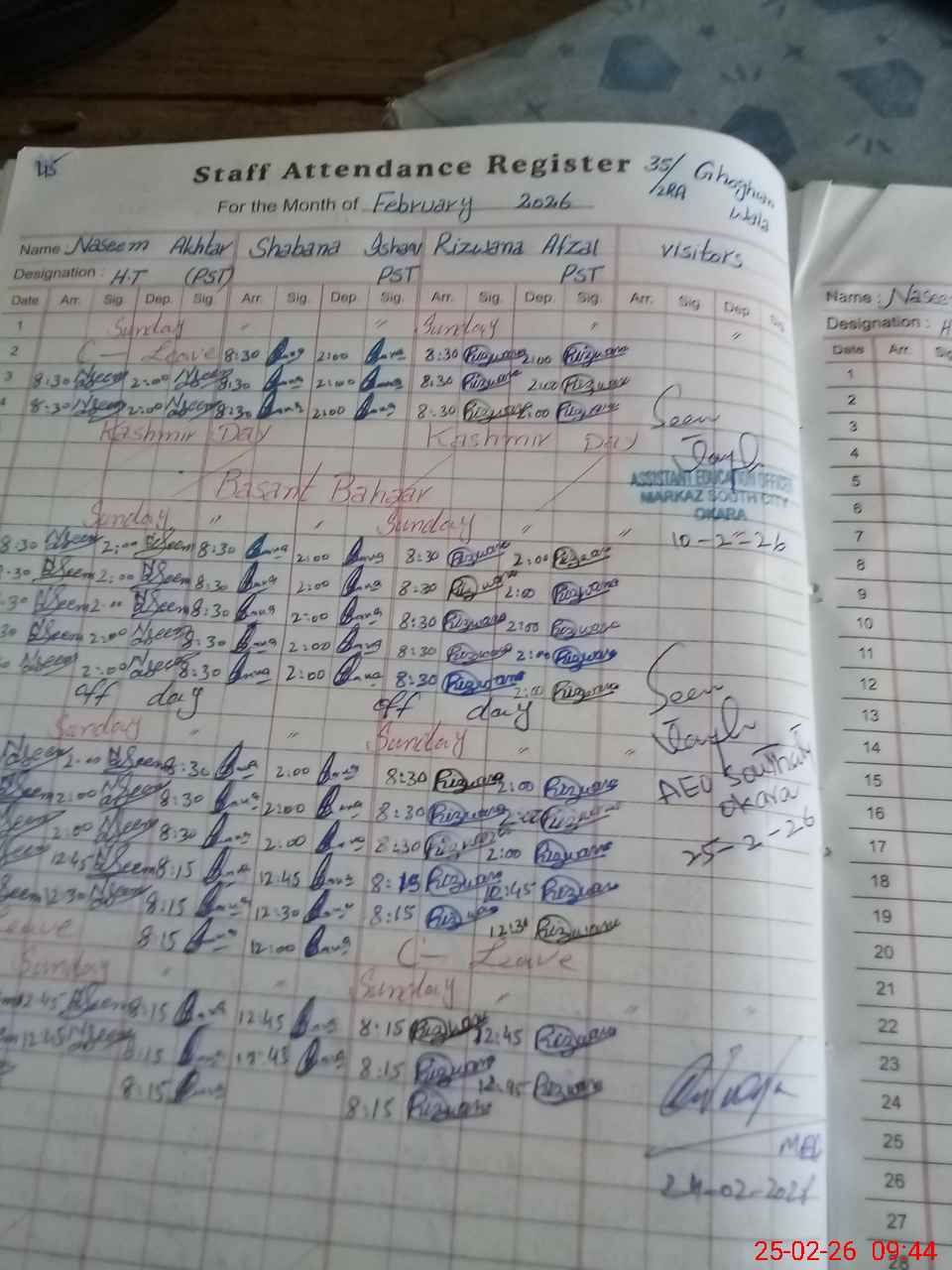 | Name: Na**** Ak**** Designation: (School Headmaster's/Headmistress's) PST Phone/Cell Number: 03**** |